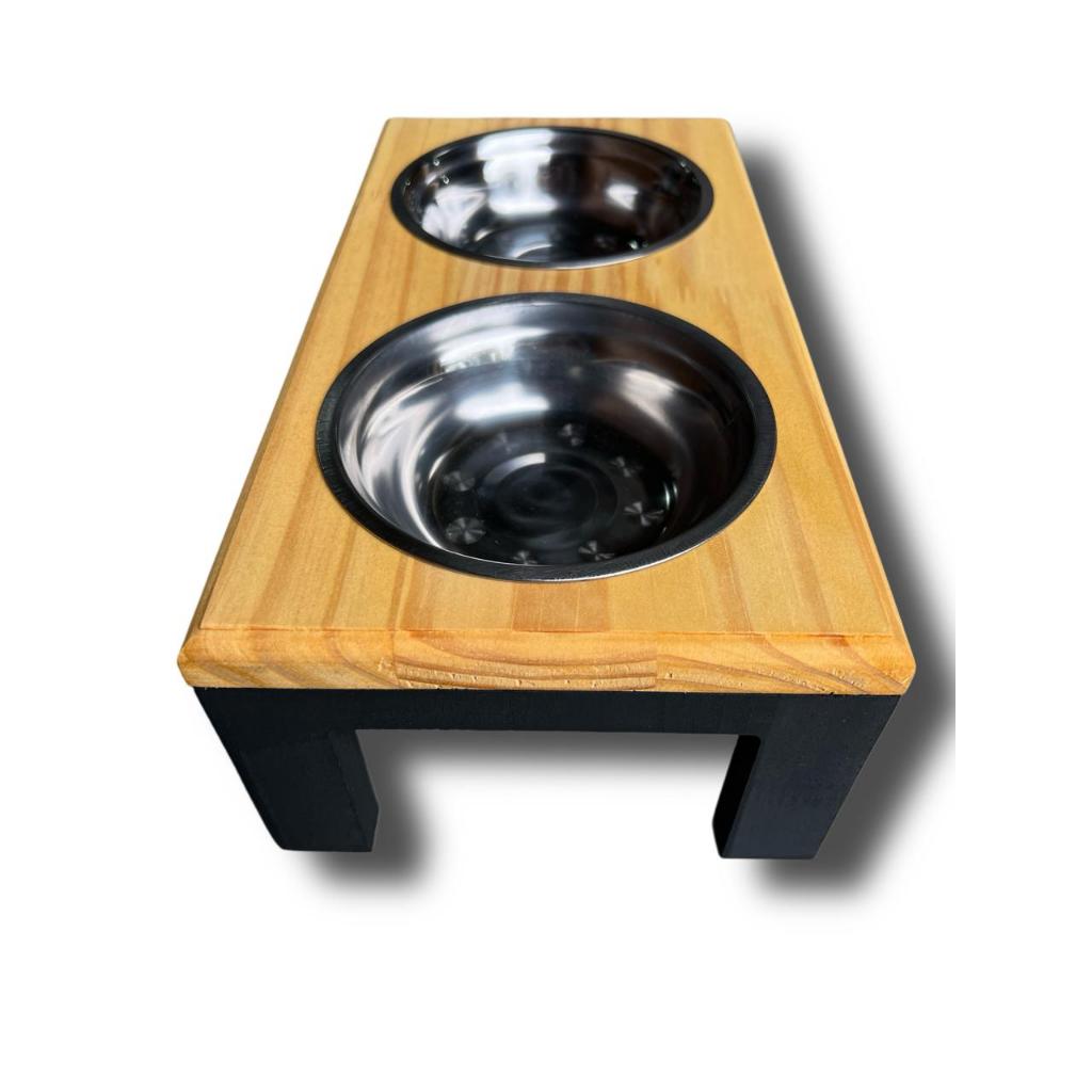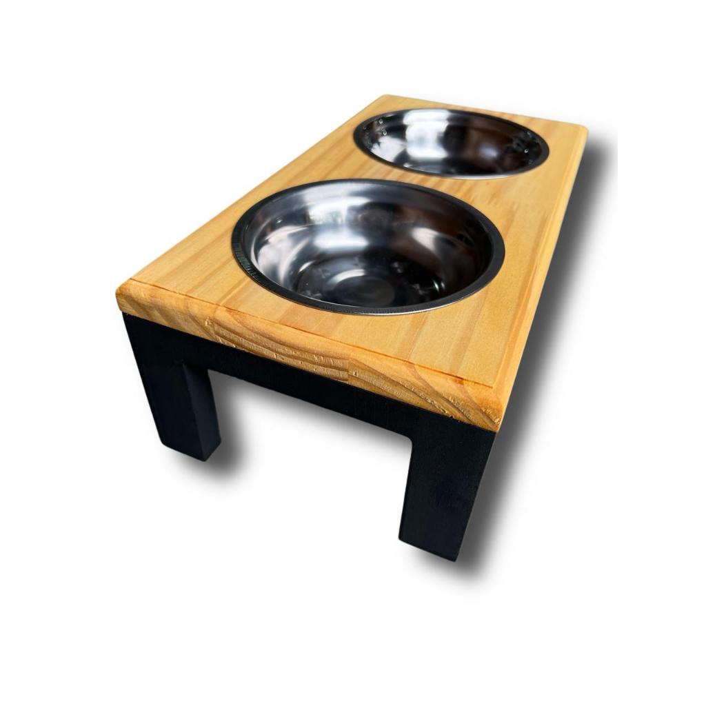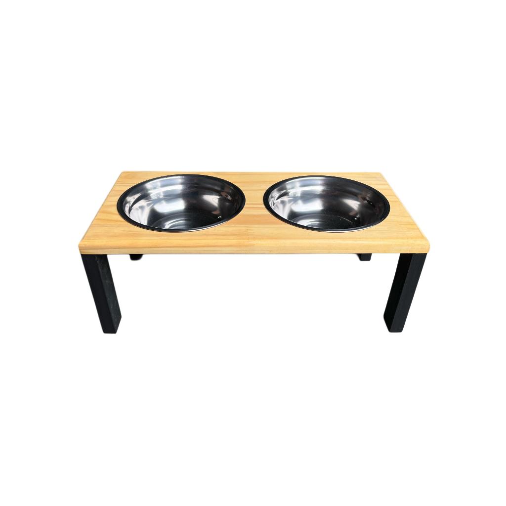 Comedouro Madeira Elevado Duplo Para Cães E Gatos - P