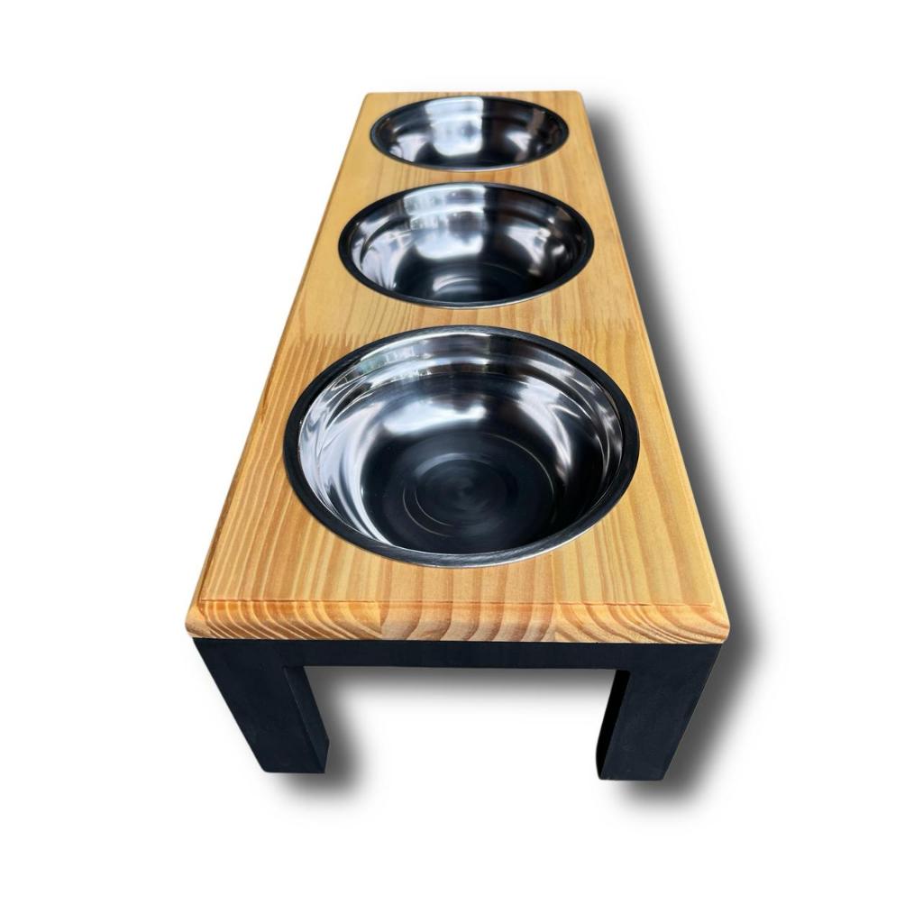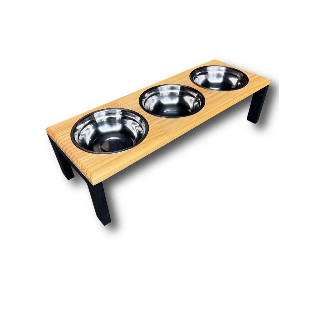 Comedouro Elevado Triplo Para Cães e Gatos - Tamanho M