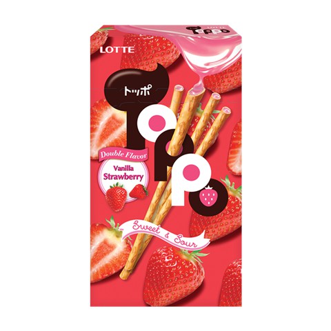 Lotte Toppo Chocolate Baunilha Morango 40g Biscoito Japonês Asia Especial Tolulabox