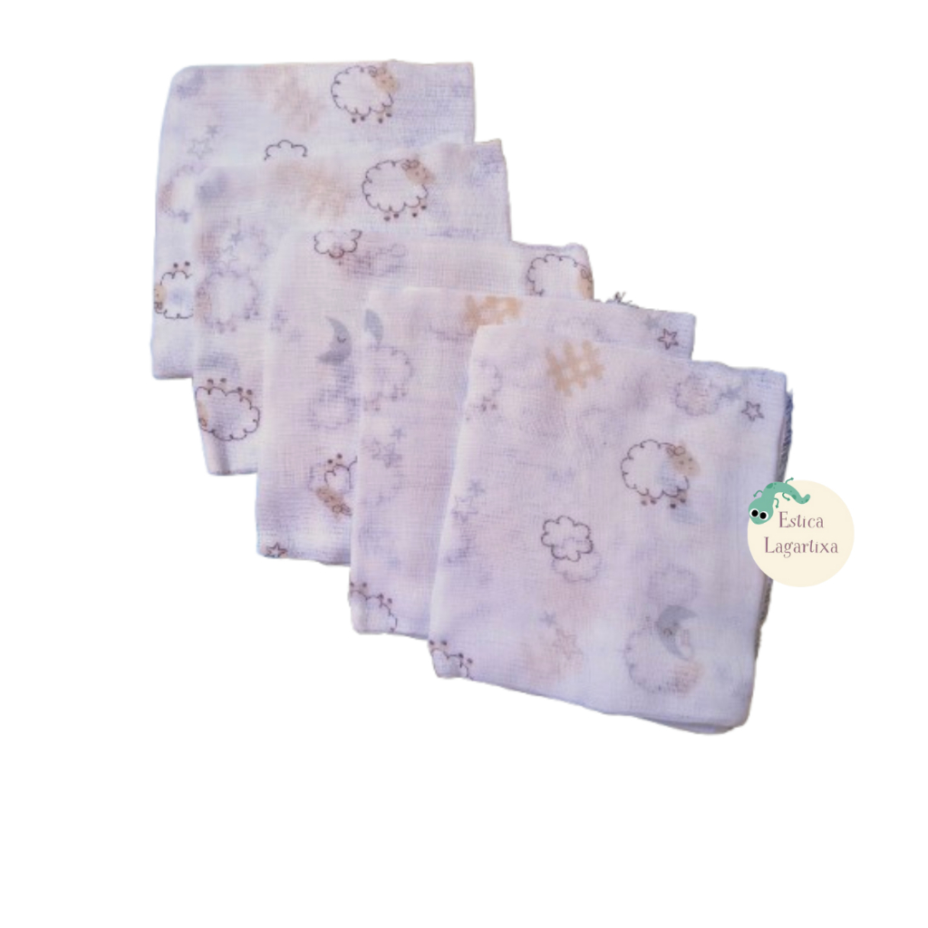 Fralda de Pano Bebe kit com 10 Tecido 100% Algodão 60x60 Paninho Babete Estampada