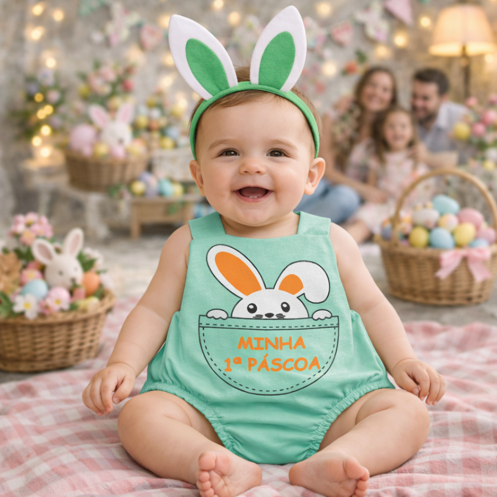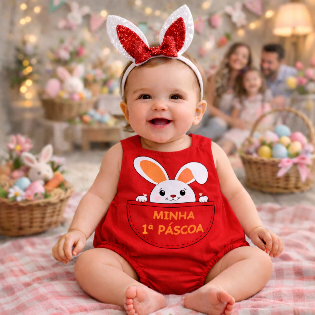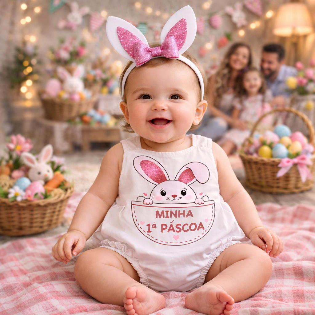 Roupinha Infantil de Páscoa para Bebê | Conjunto Coelhinho + Arquinho | 3 a 12 Meses