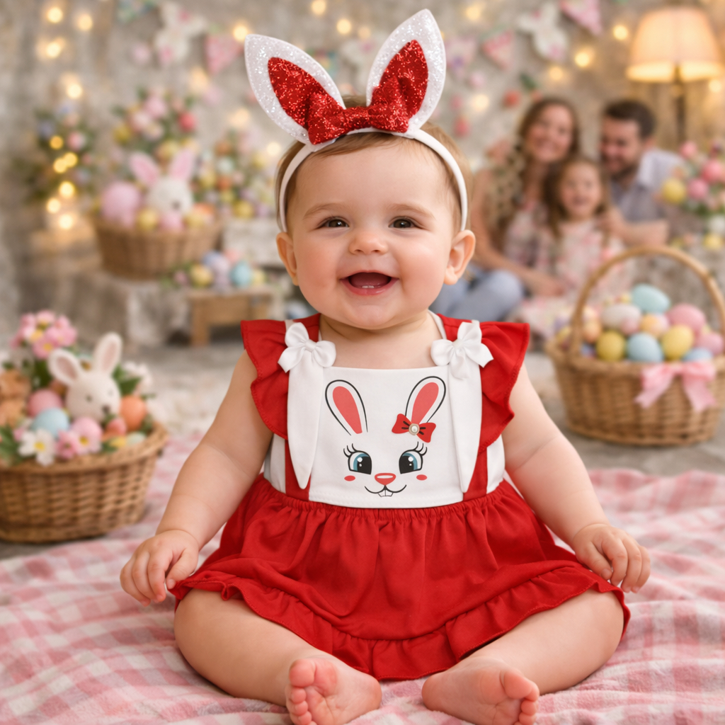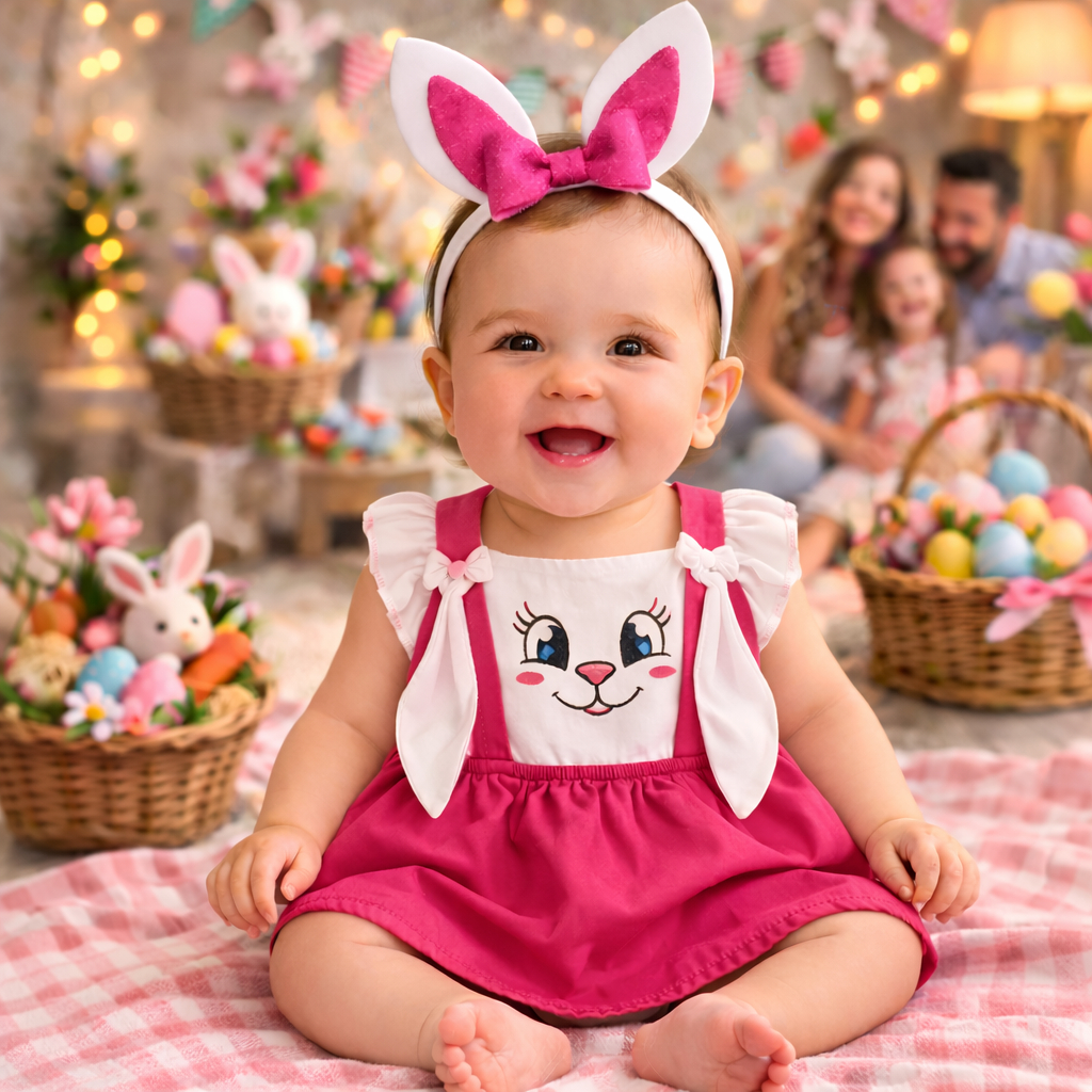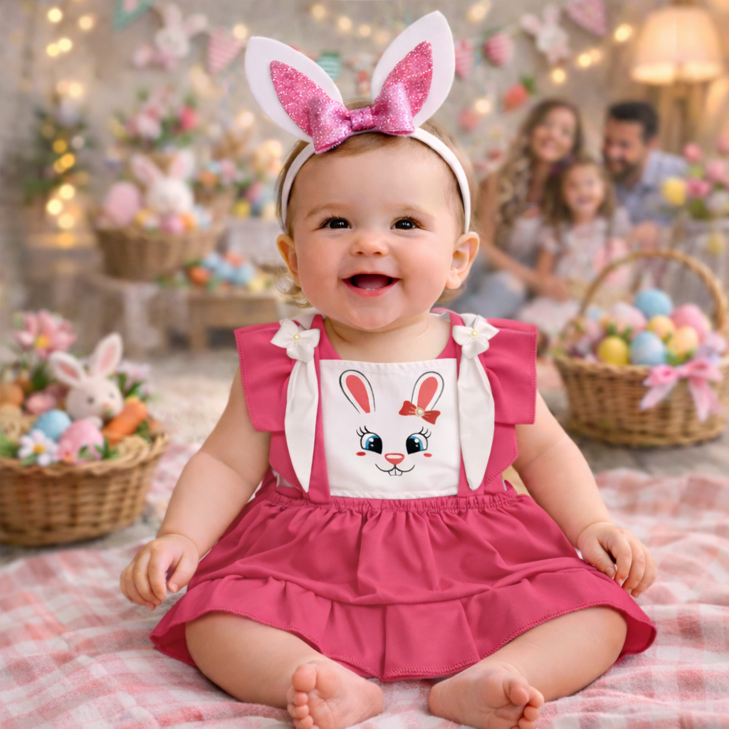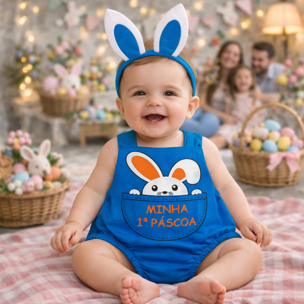 Roupinha Infantil de Páscoa para Bebê | Conjunto Coelhinho + Arquinho | 3 a 12 Meses
