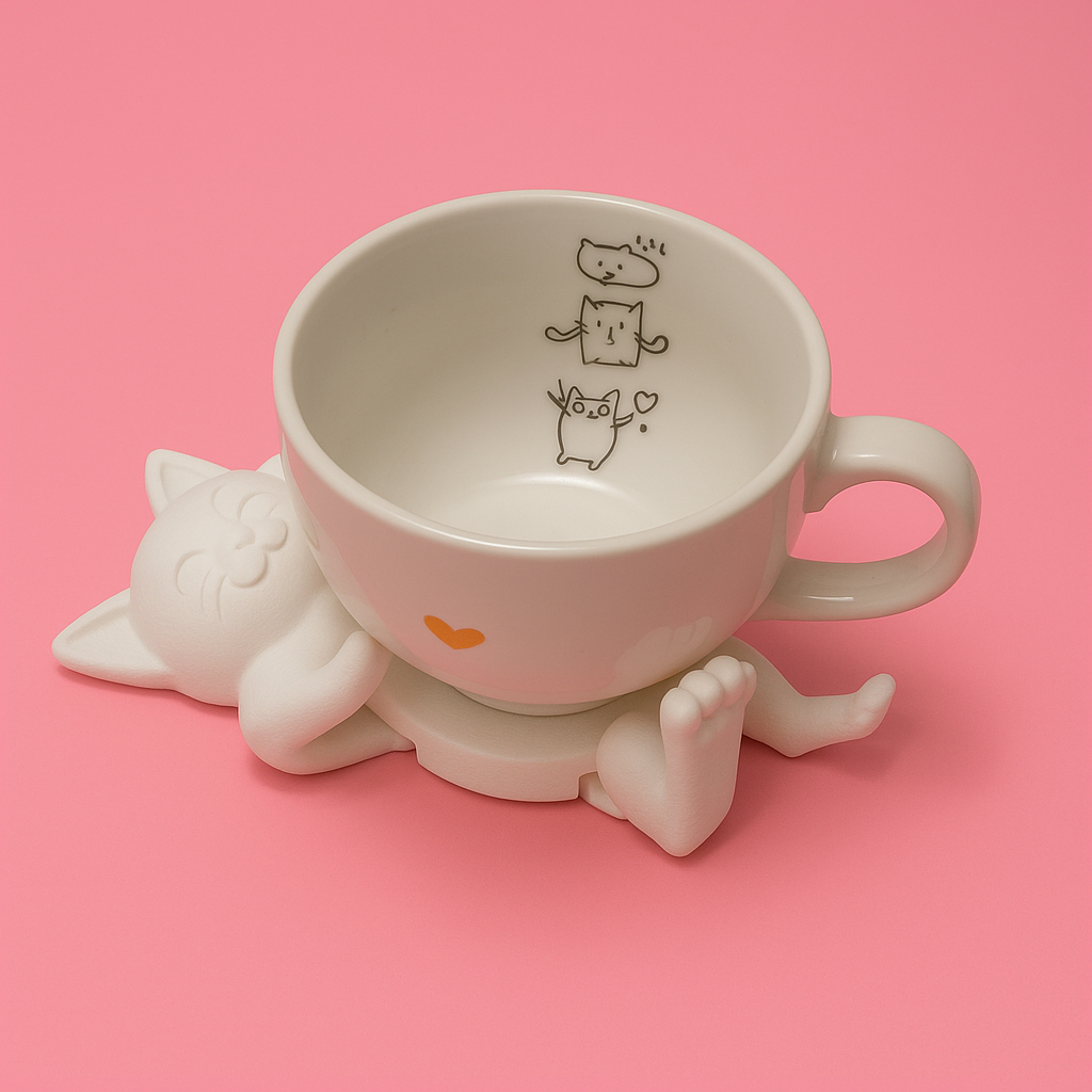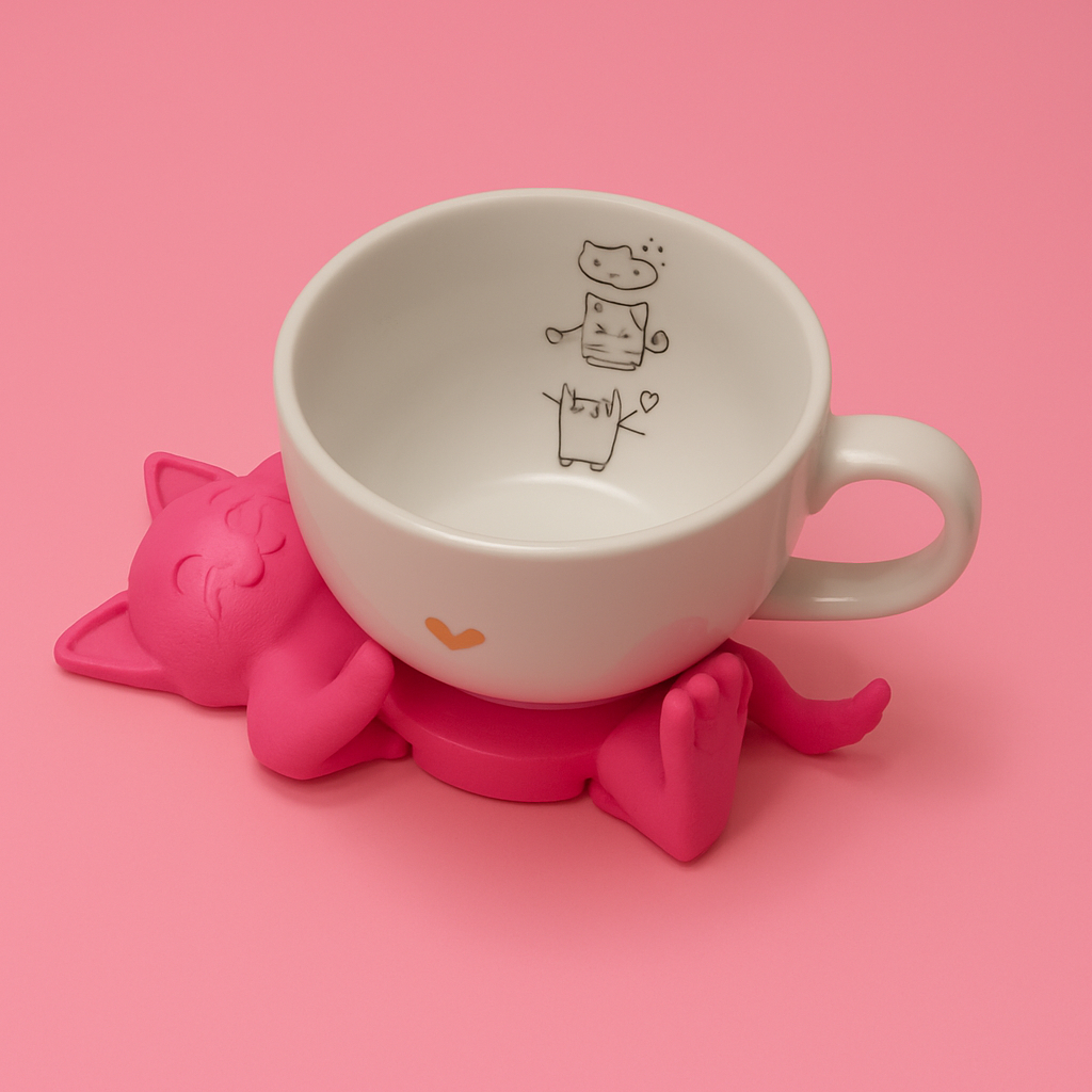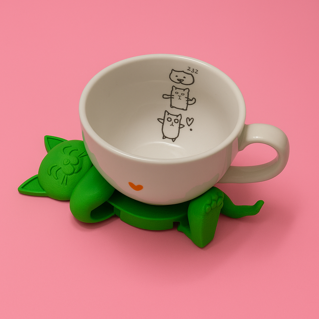 Suporte/Porta Copos 3D de Gatinho Abraçador de Caneca Xícara Copo Latinha Fofo Decorativo