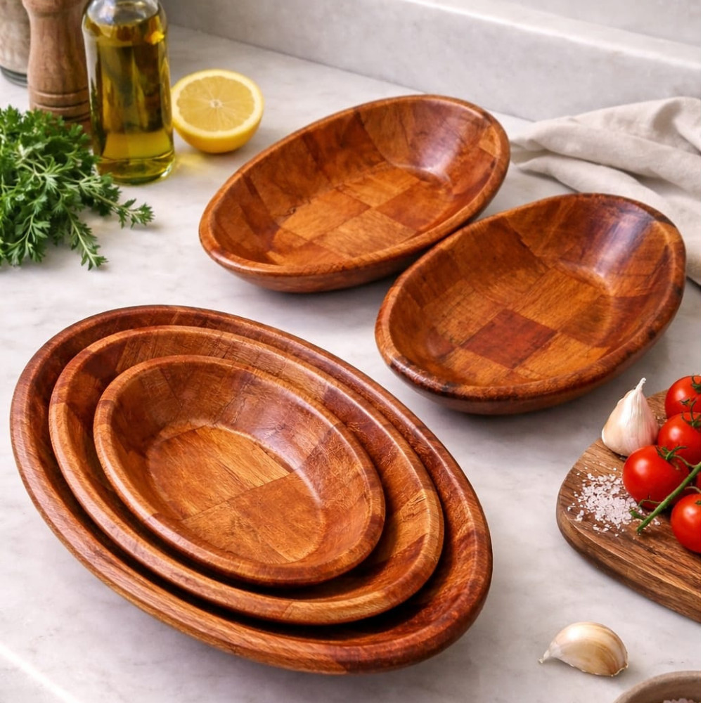 Tigelas Gamelas Bolw Madeira Envernizada Ovais e Quadradas Saladeiras kit com 6 moderno pratico