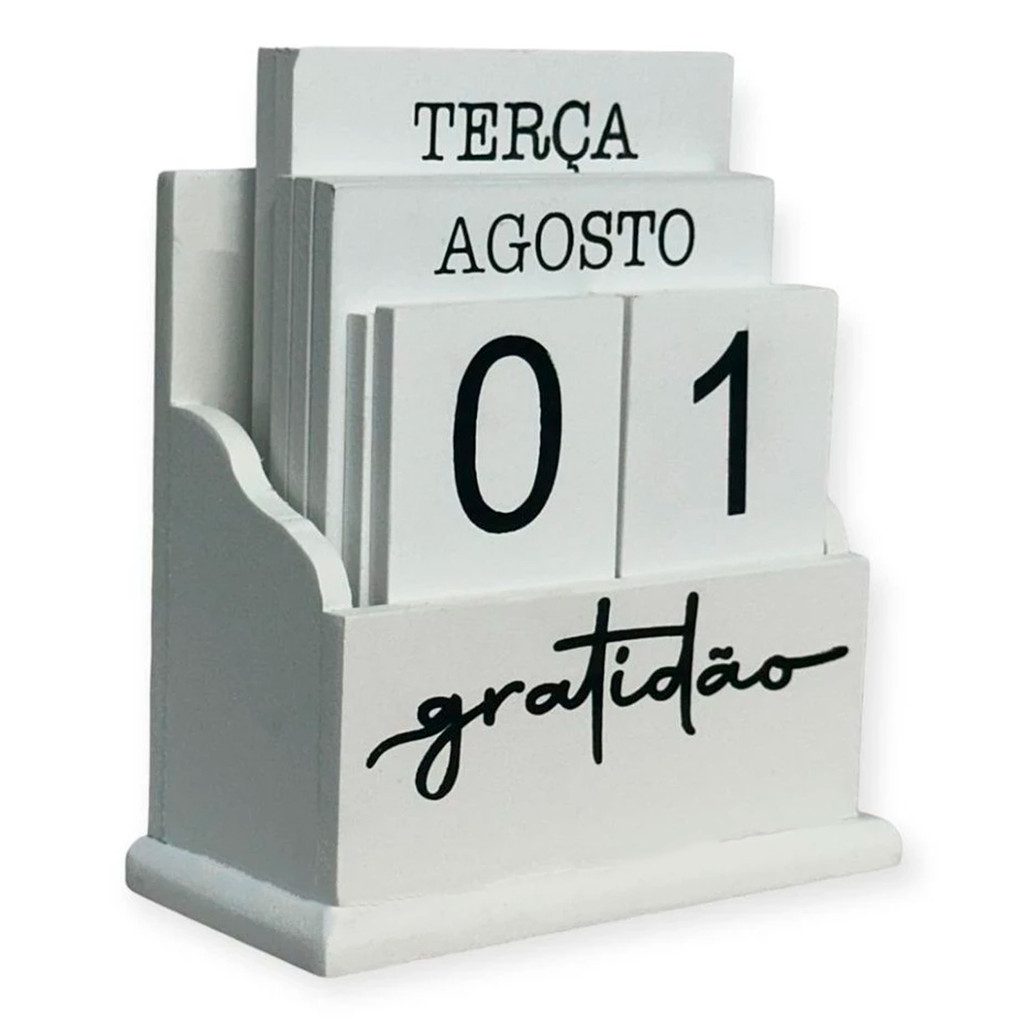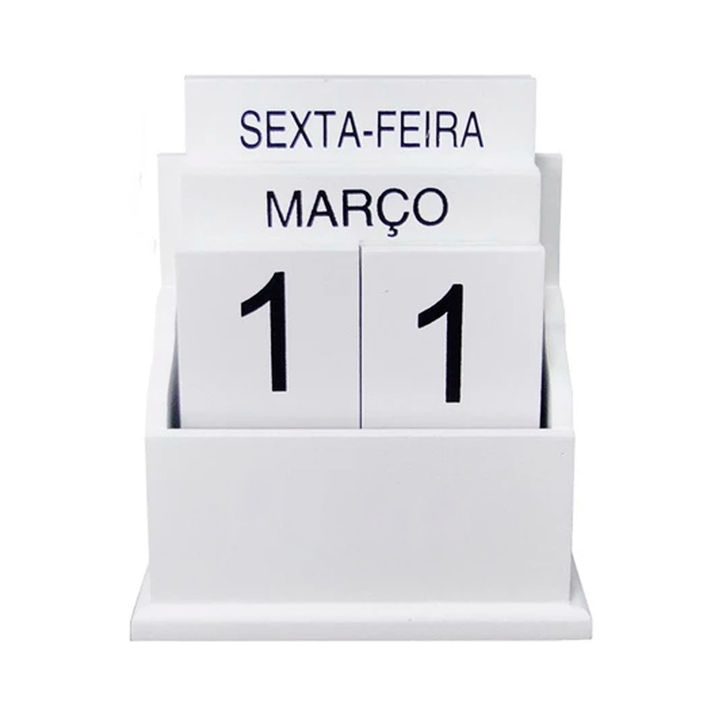 Calendário Permanente Decorativo de Mesa Elegante Suporte e Bloquinhos em Madeira