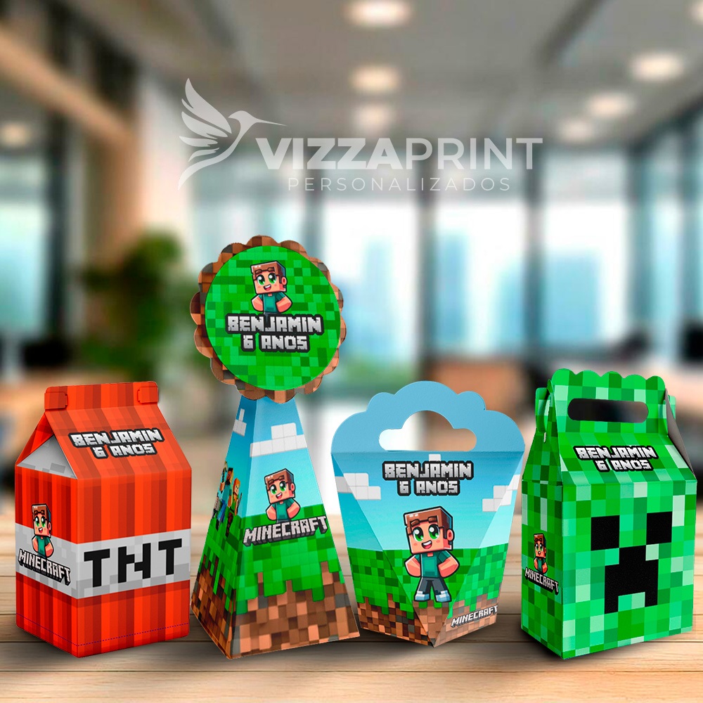 Kit 20 Caixinhas Personalizadas Minecraft( 5 de cada ) Festa Personalizada - Lembrancinha para Festa