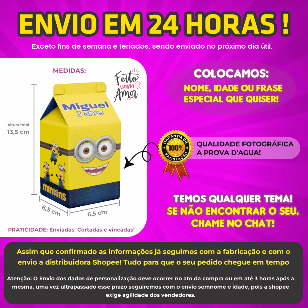 Sob encomenda: envio após 3 dias da compra