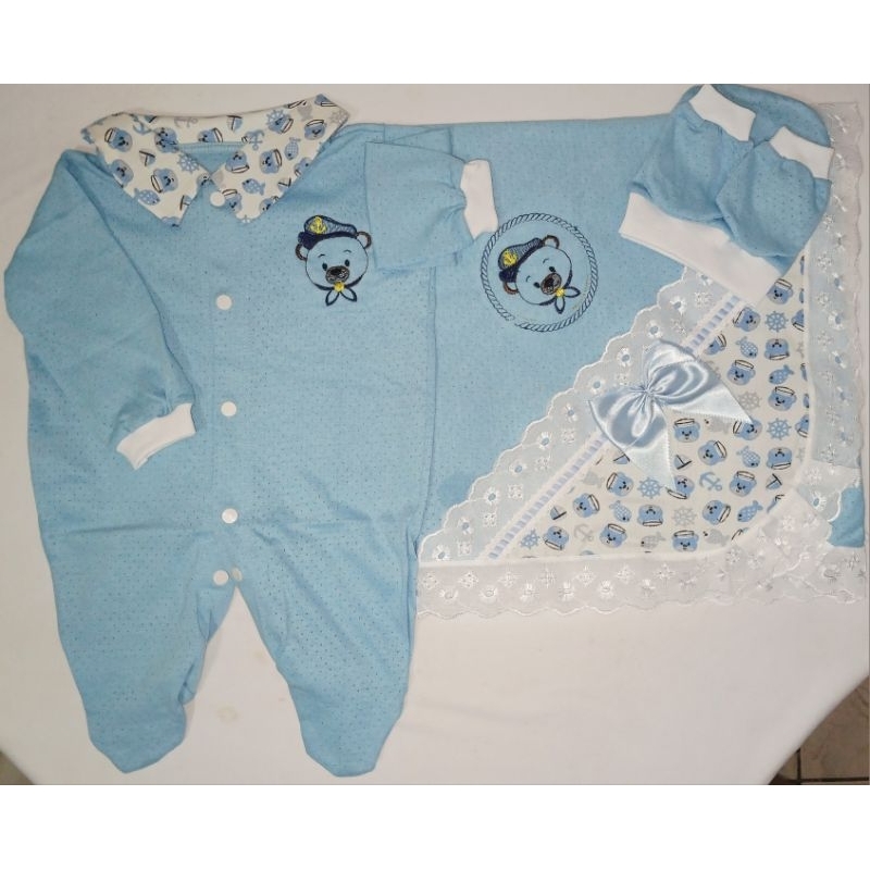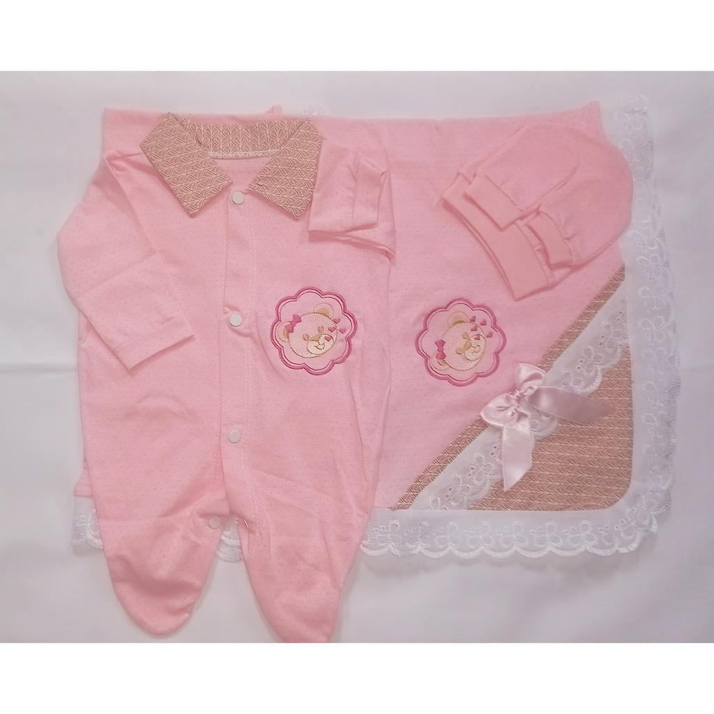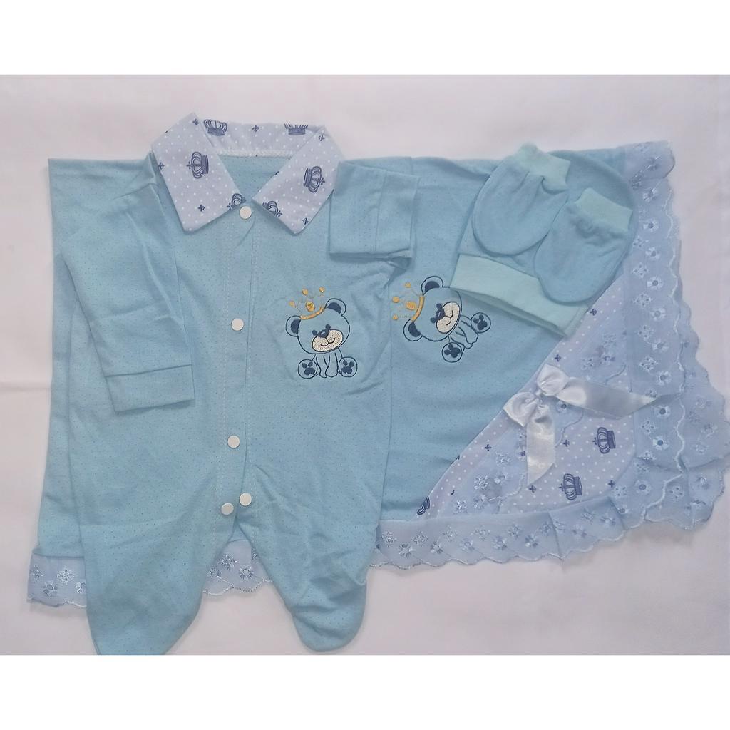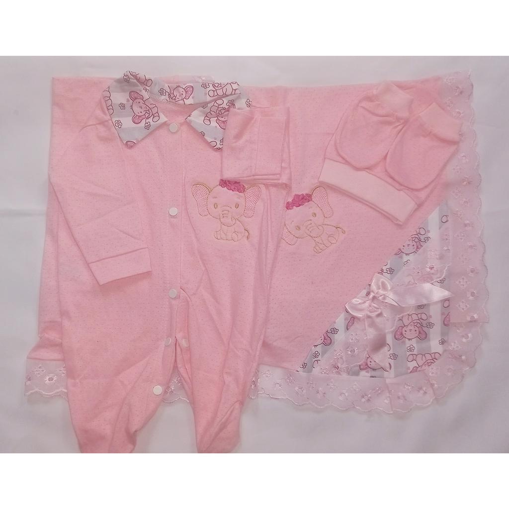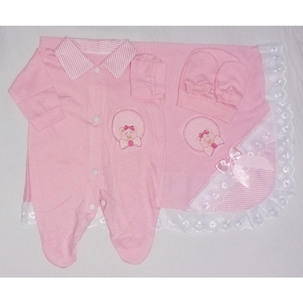 Saida Maternidade 4 peças RN Menino Menina Maternidade Malha Furadinha