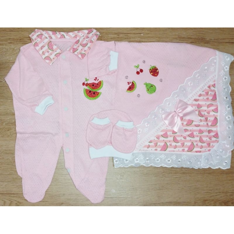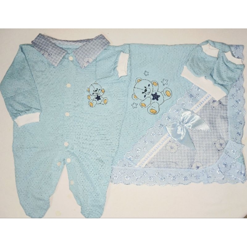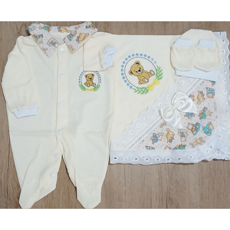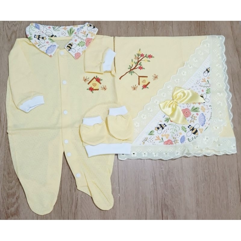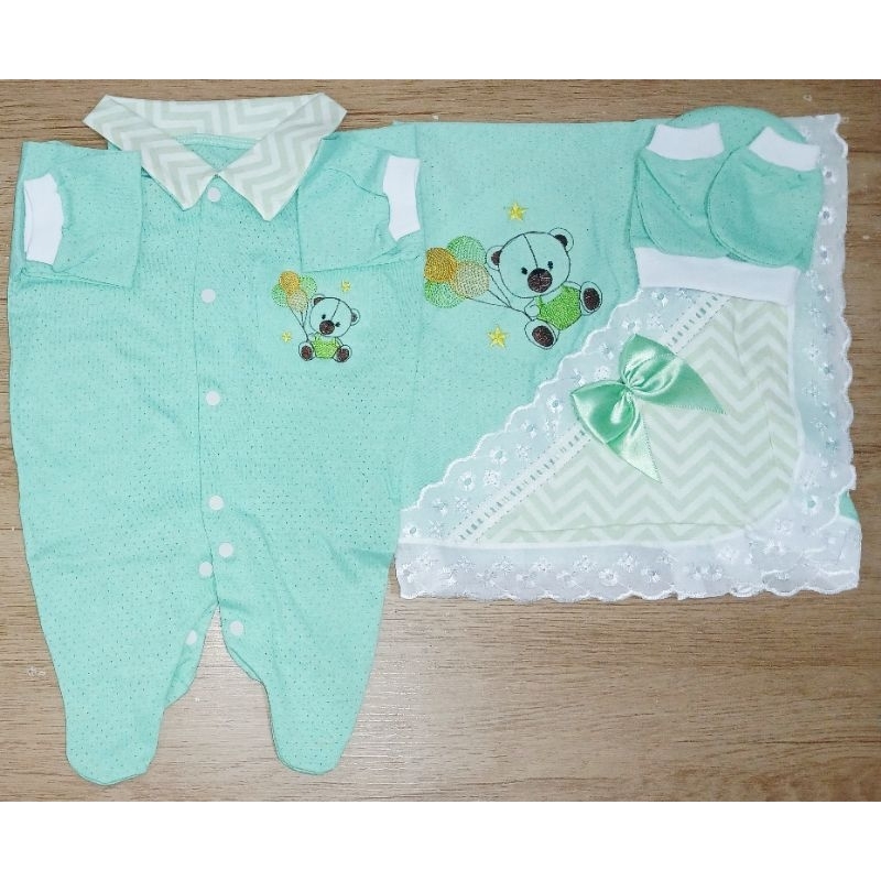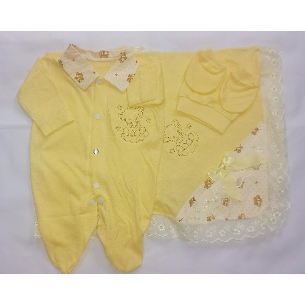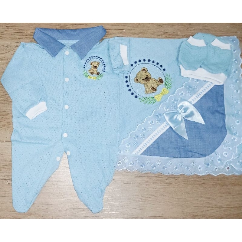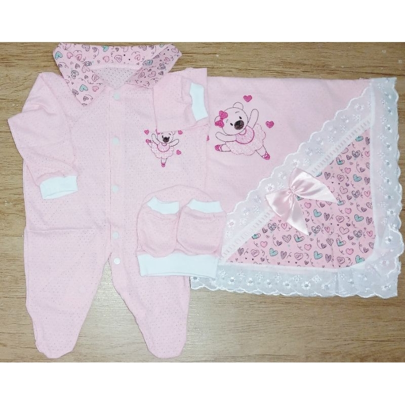 Saida Maternidade 4 peças RN Menino Menina Maternidade Malha Furadinha