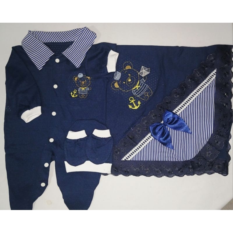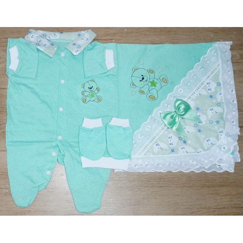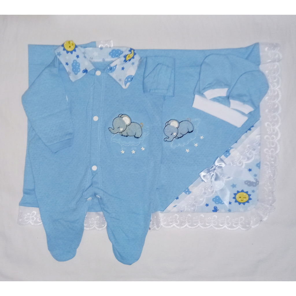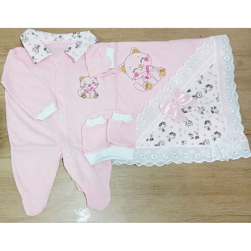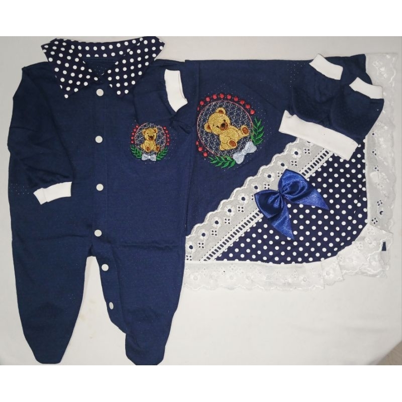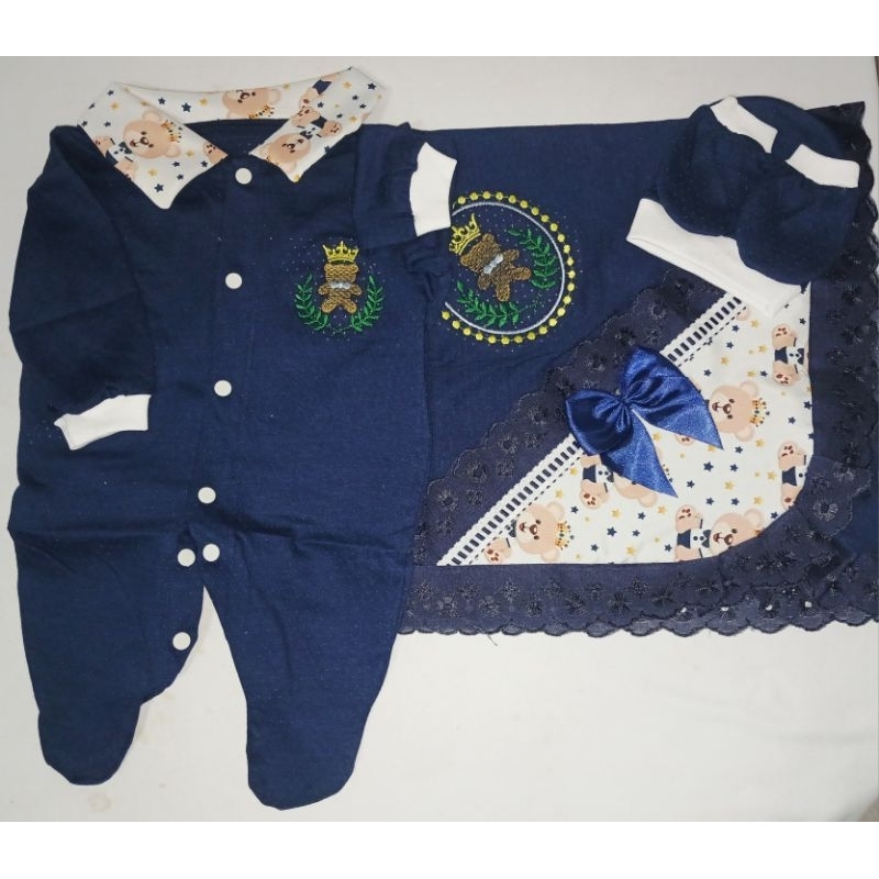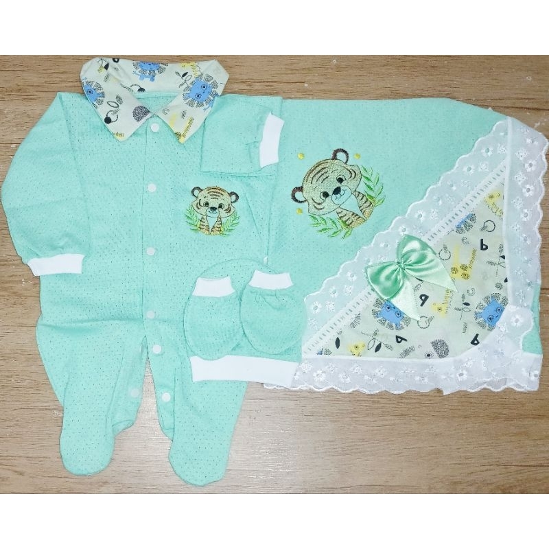 Saida Maternidade 4 peças RN Menino Menina Maternidade Malha Furadinha