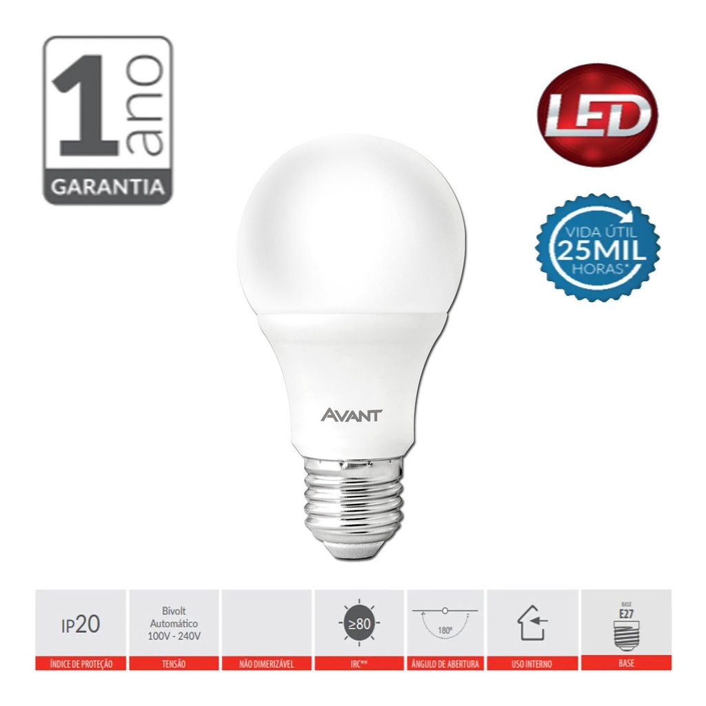 Kit 6 Lâmpada Led 9w Branco Frio E27 Bivolt Casa Comércio Avant