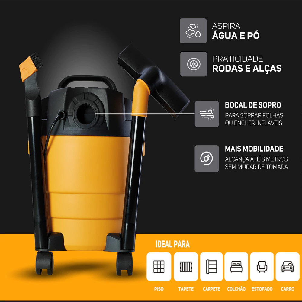 Aspirador de Pó e Água 10 Litros Com Rodas Função Soprador de Folhas WAP