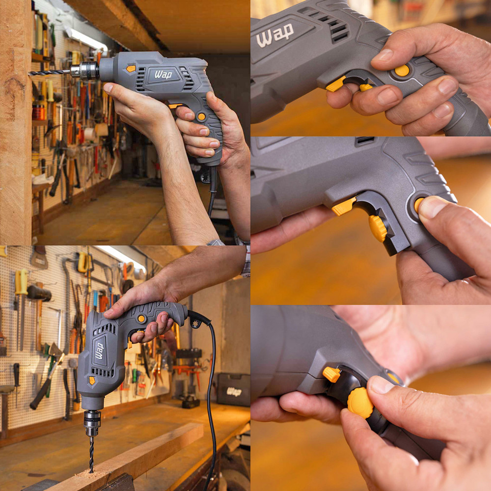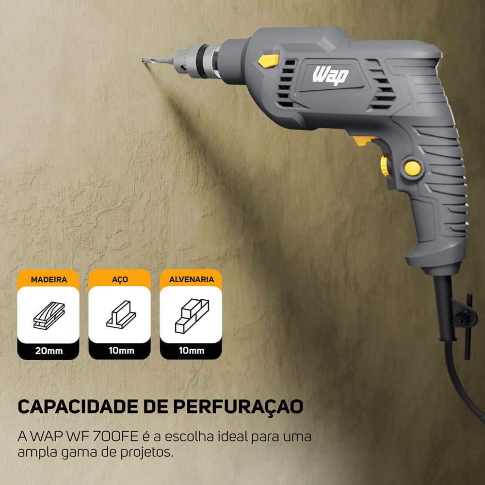 Parafusadeira e Furadeira WF 700FE com Impacto Seletor Reverso 700W e Botão Trava Wap