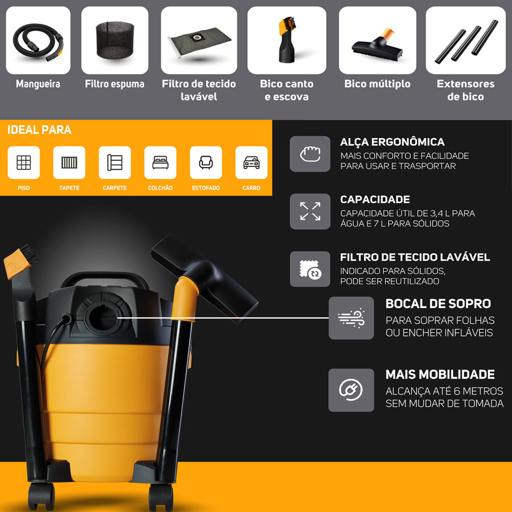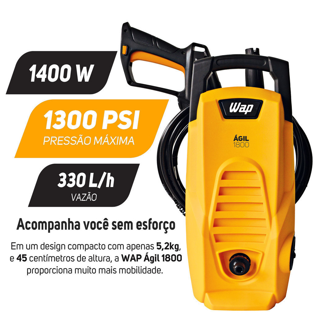 Kit Limpeza Lavadora de Alta Pressão Ágil 1400W Potente com Aspirador de Pó e Água GTW 10 Wap