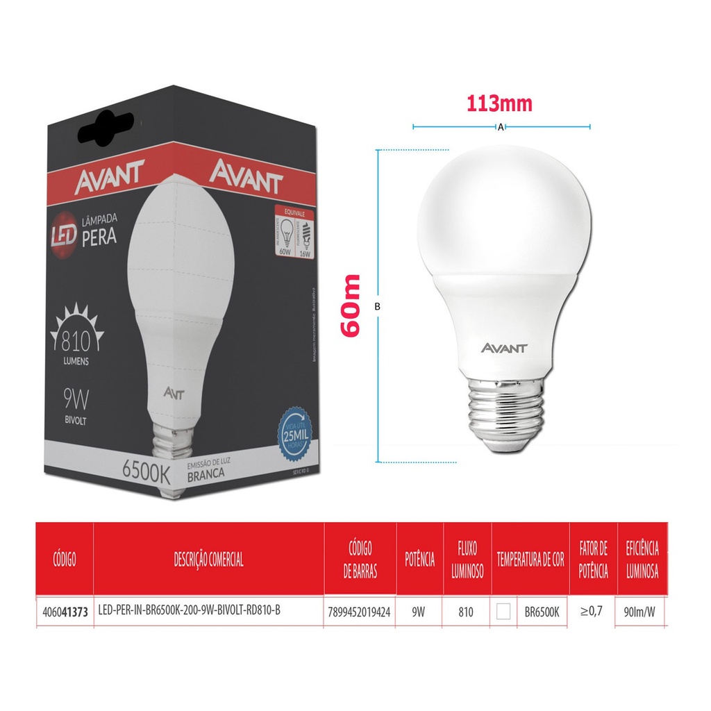 60 Lâmpadas Led 9W Equivalente a Antiga 60W Embalagem Individual Avant