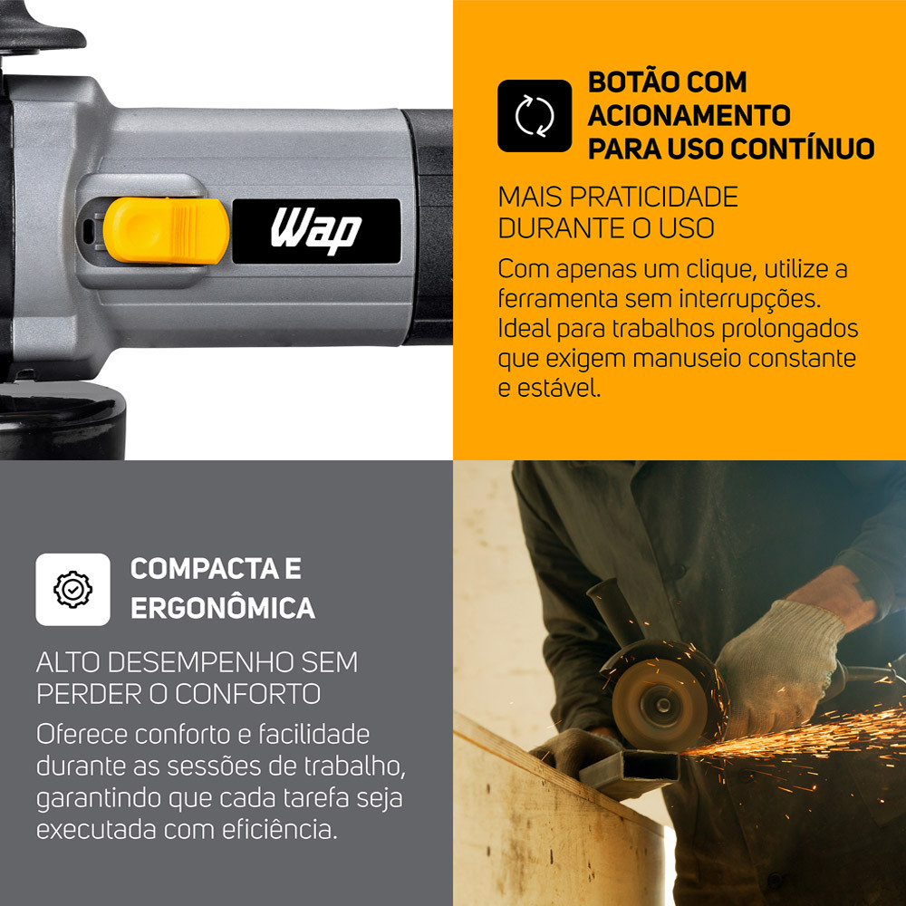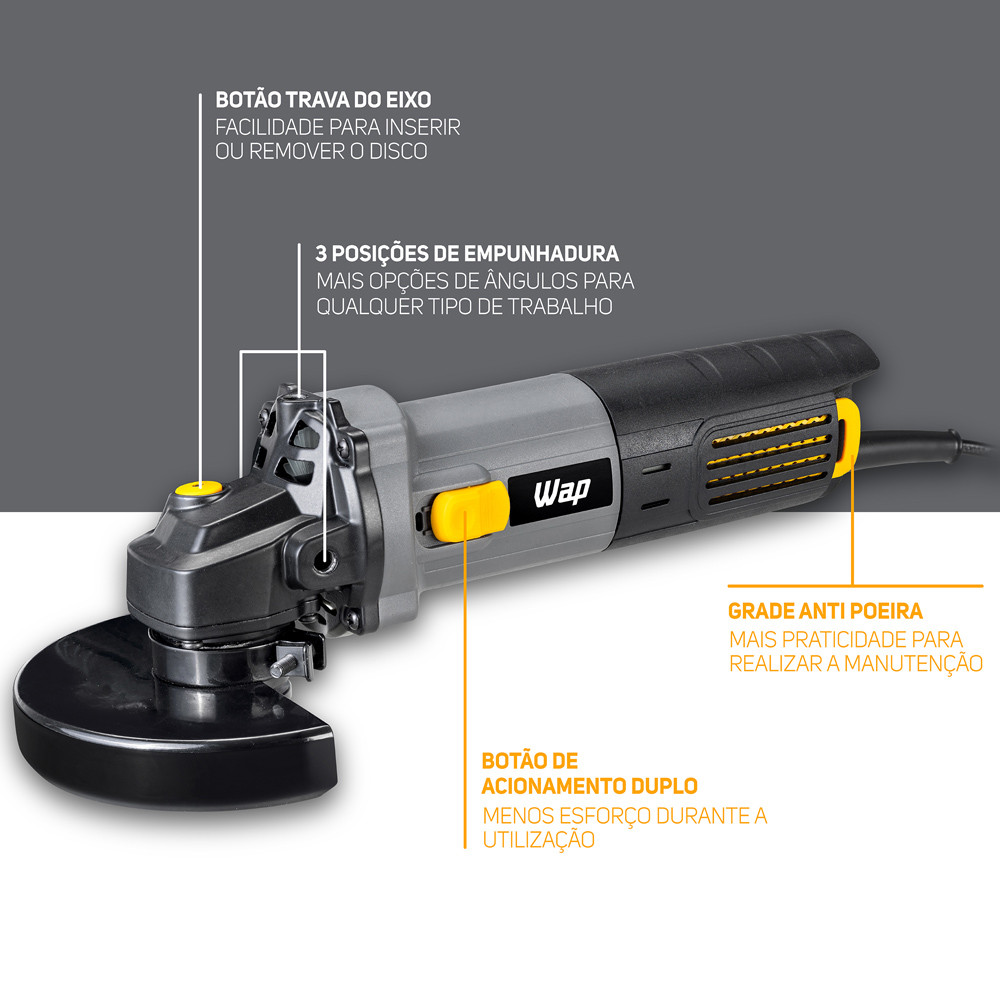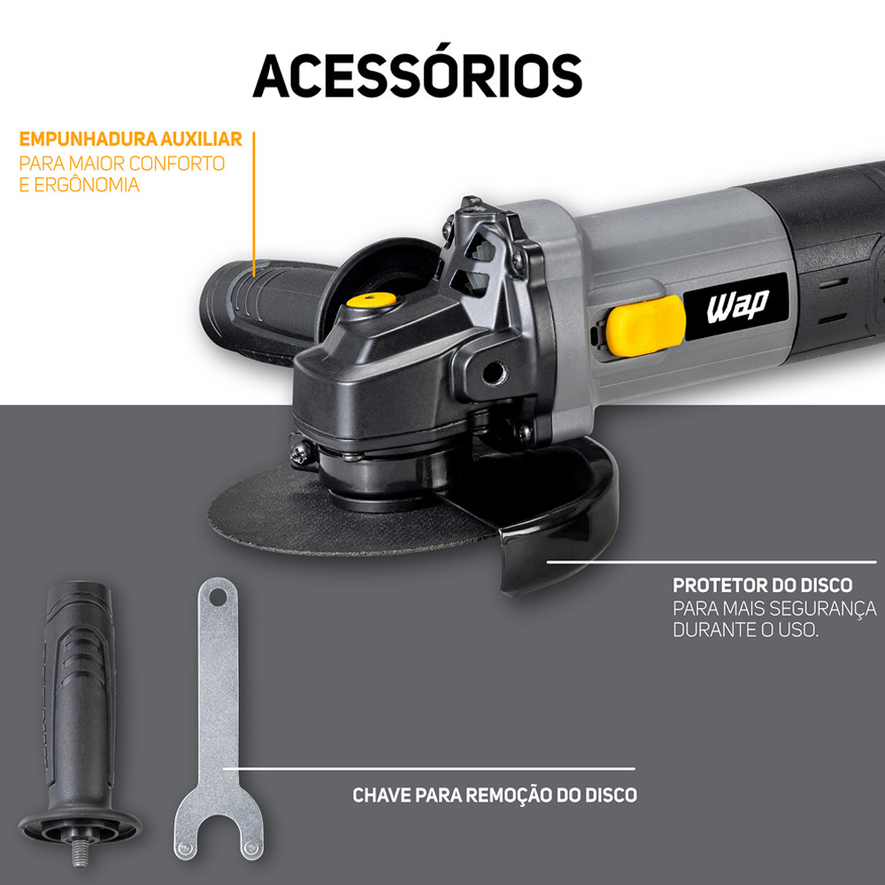 Esmerilhadeira Angular 125mm Corta Metal Com Empunhadura Auxiliar Grade Anti-Poeira WF ES01 Wap