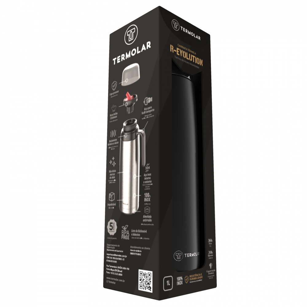 Garrafa Térmica Preta 100% Inox 1L Café Quente 20H Termolar