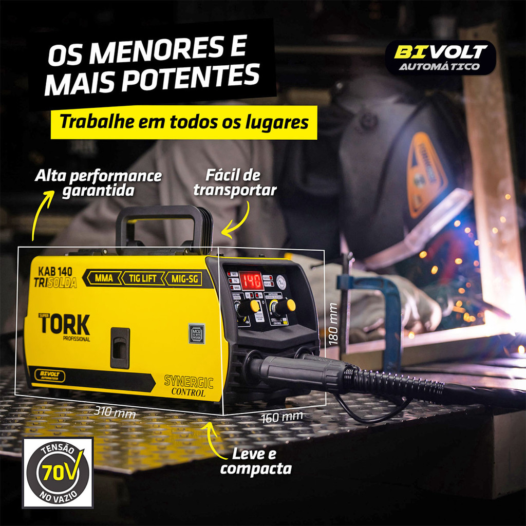Maquina Inversor de Solda 3x1 Mig Sem Gás TIG-LIFT e MMA 140A Bivolt 127v 220v Super Tork