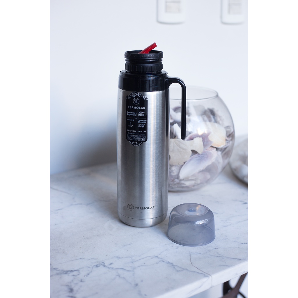 Garrafa Térmica 100% Inox Inquebrável R-Evolution 1L Rolha Dupla Ação Termolar