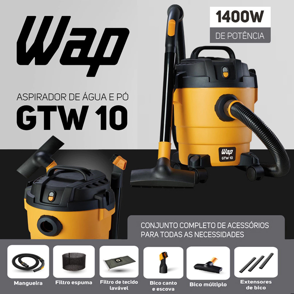 Aspirador de Pó e Água 10L 1400w Soprador Folhas Profissional Wap