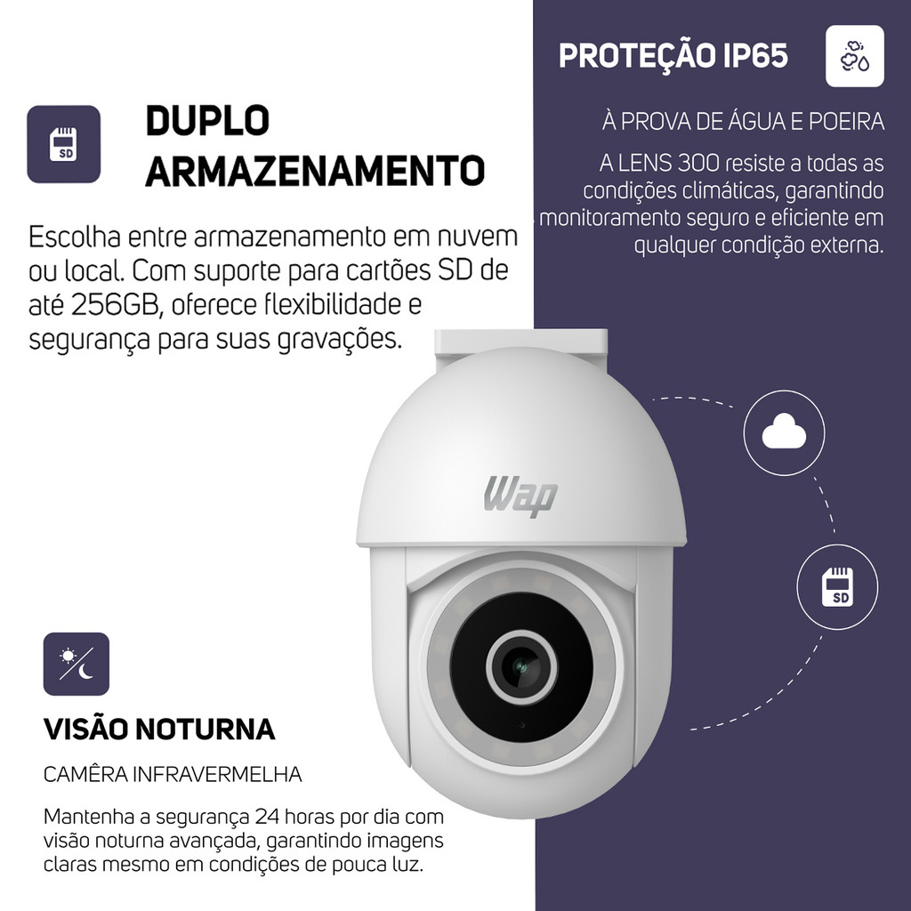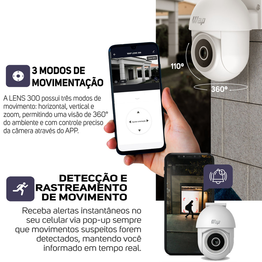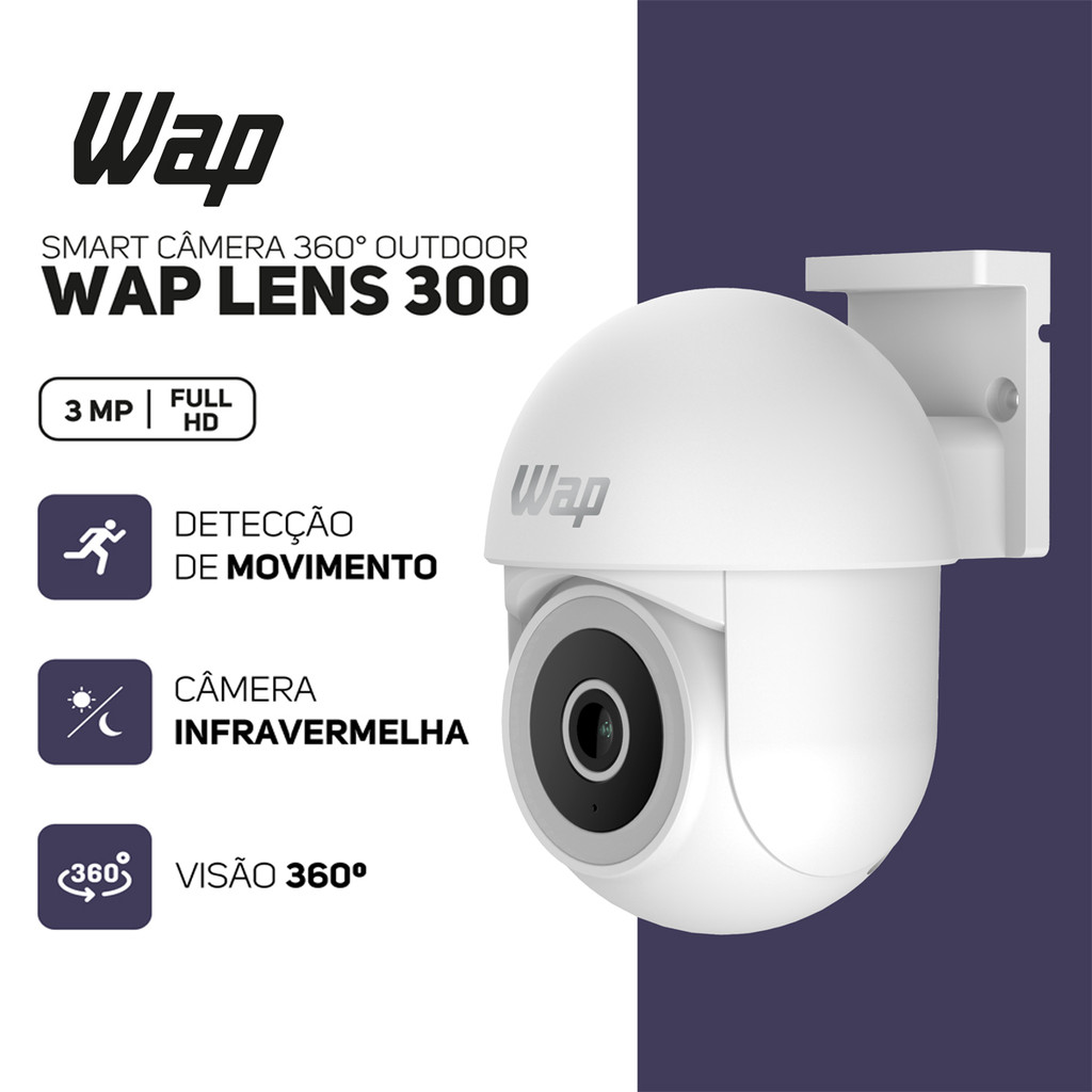 Câmera de Segurança Sensor de Movimento 360 Visão Noturna com Microfone LENS 300 Wap