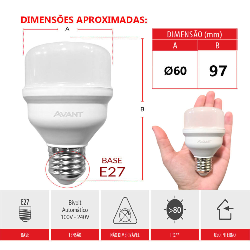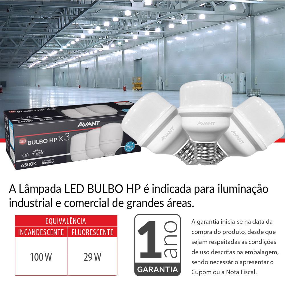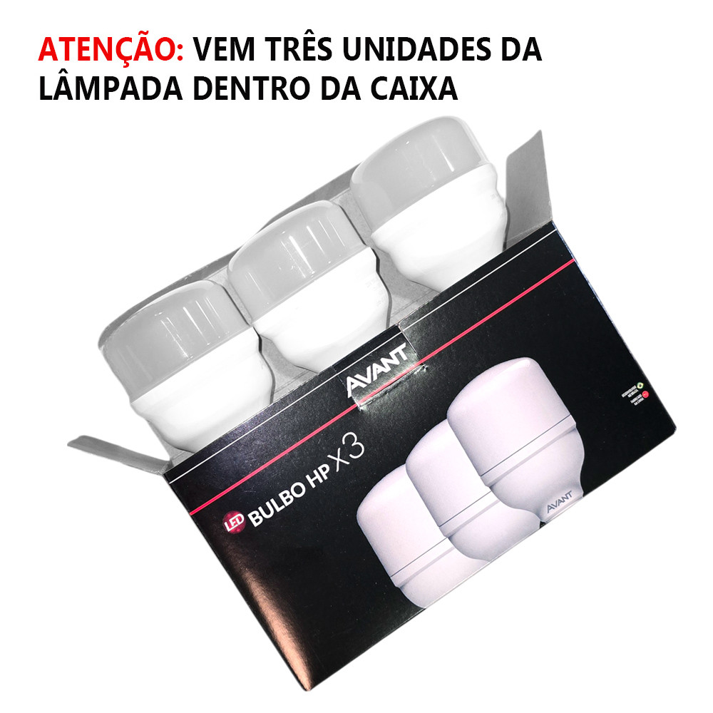 Kit 3 Lâmpadas LED Bulbo HP Avant 20W E27 6500K Bivolt Luz Branca Fria Alta Potência