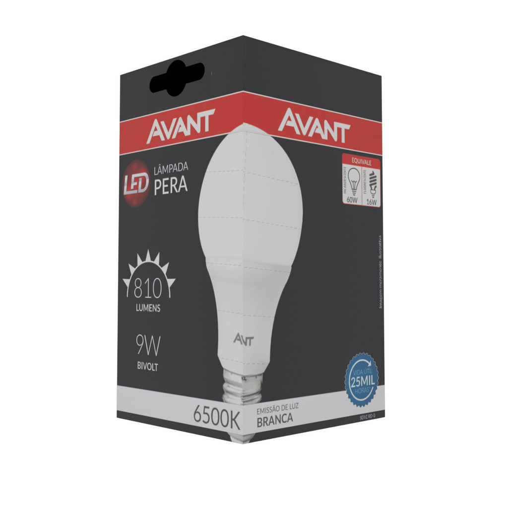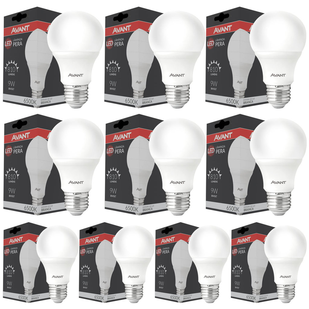 Kit 10 Lampada Pera 9W Bulbo Soquete E27 Luz Branco Frio 6500K Bivolt 127v 220v Led Avant