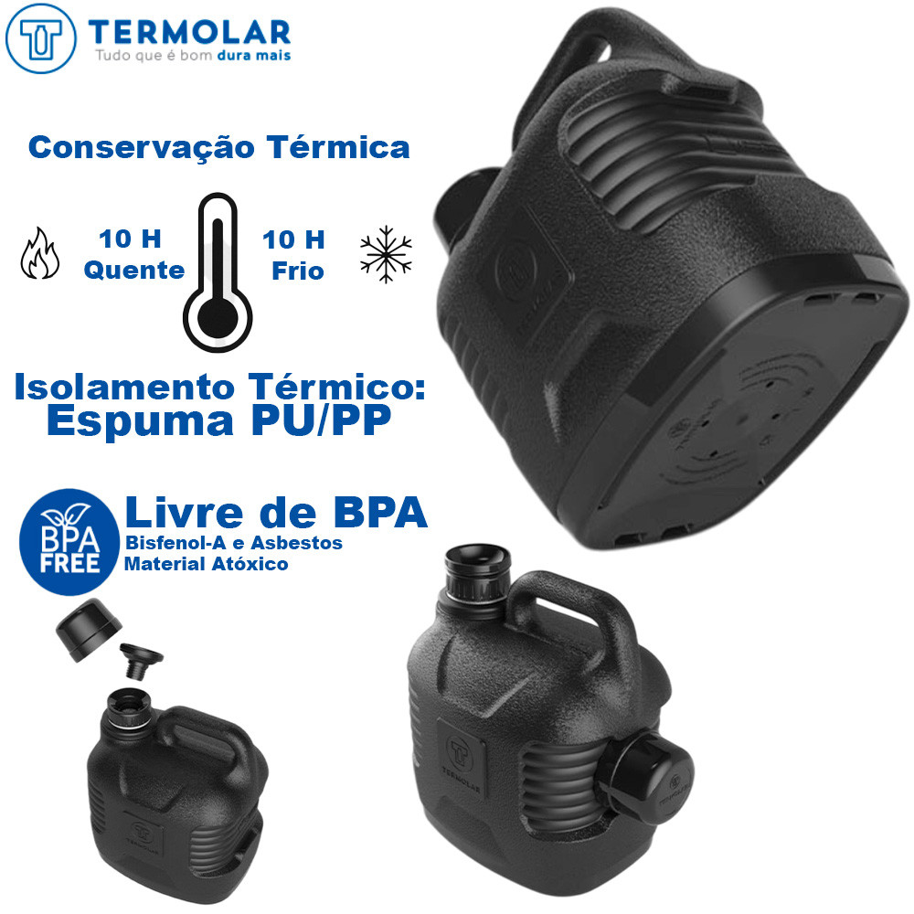 Kit 2 Garrafão Térmico Preto 5 Litros Termolar Supertermo 10H Conservação Térmica Tampa Removível