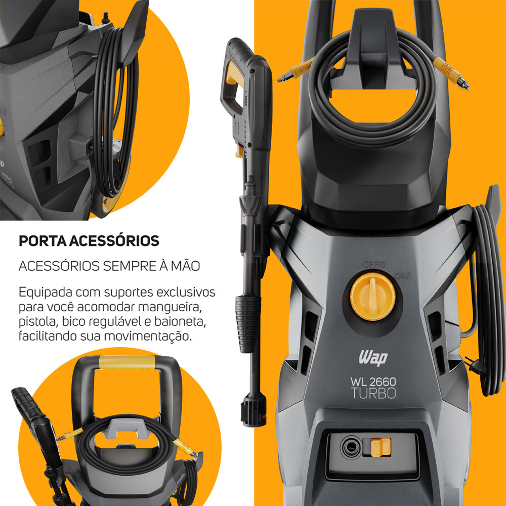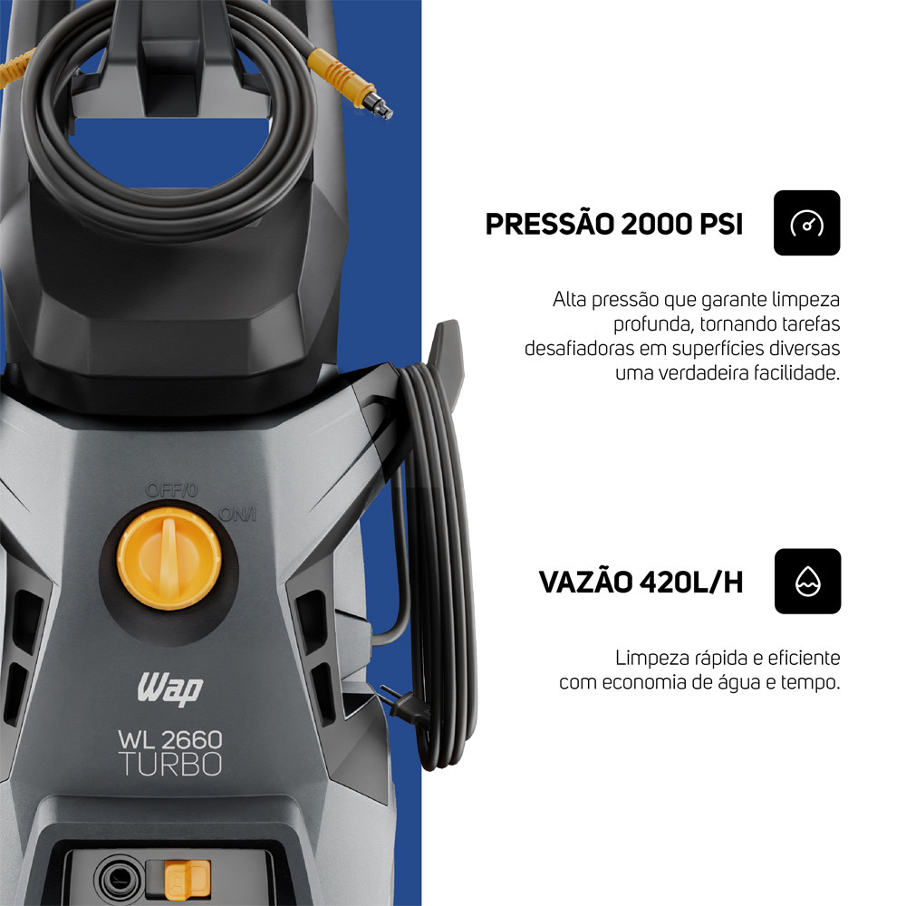 Lavadora de Alta Pressão 1800W 2000PSI Com Rodas E Aplicador de Detergente WL 2660 TURBO Wap