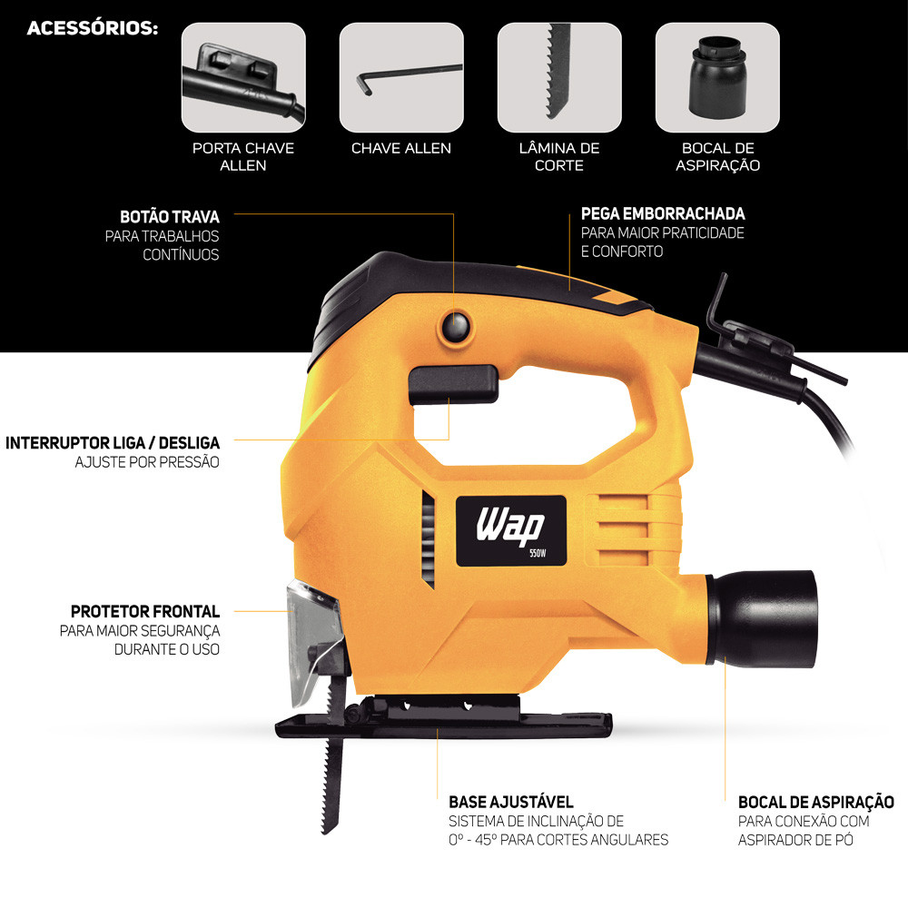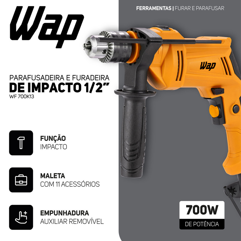 Kit Ferramentas Parafusadeira E Furadeira de Impacto com Serra Tico Tico e Maleta Martelo Broca Wap