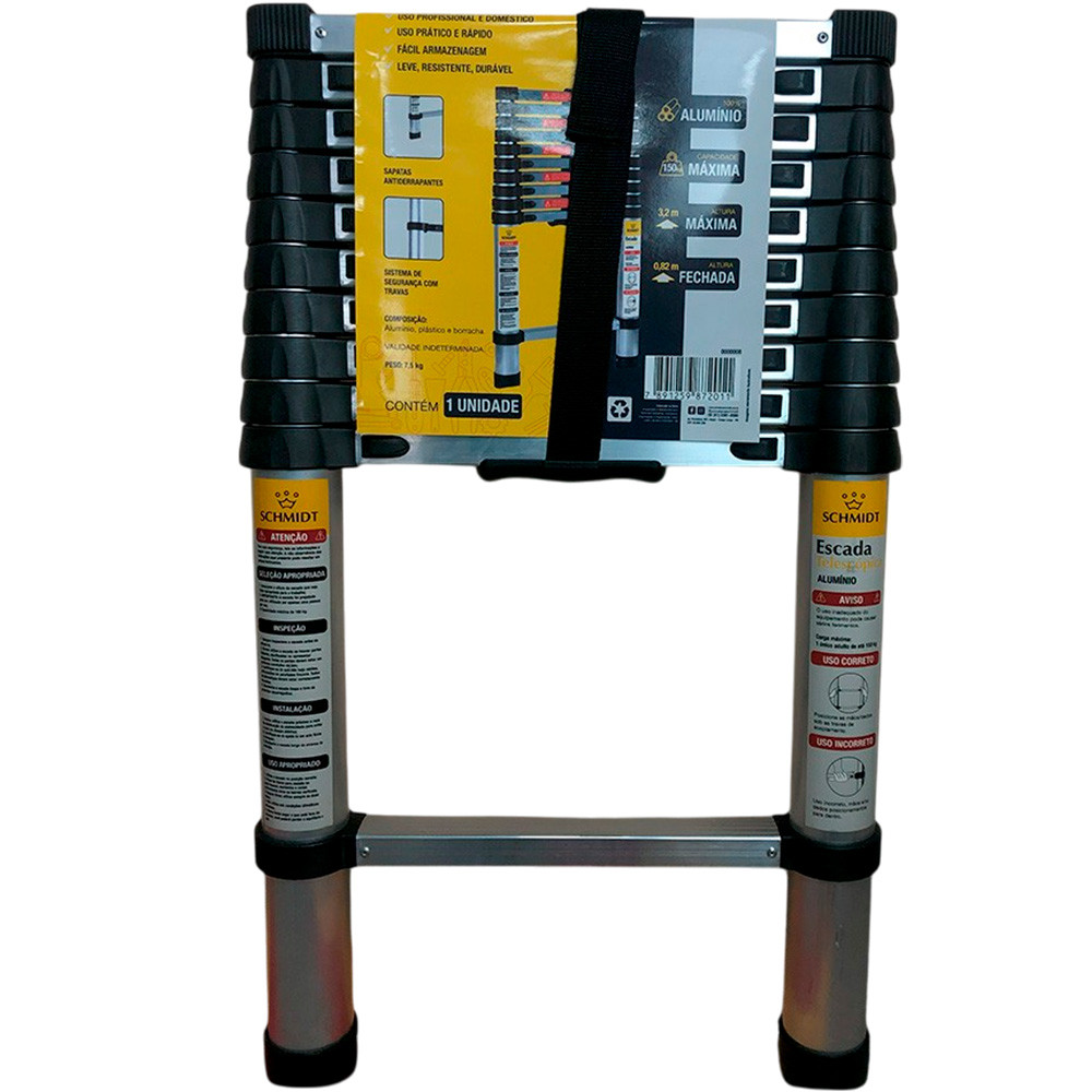 Escada Telescópica de Alumínio com Travas Individuais e Sapatas Antiderrapantes 11 Degraus