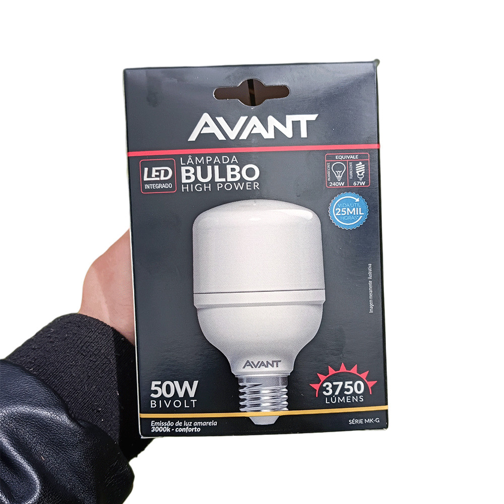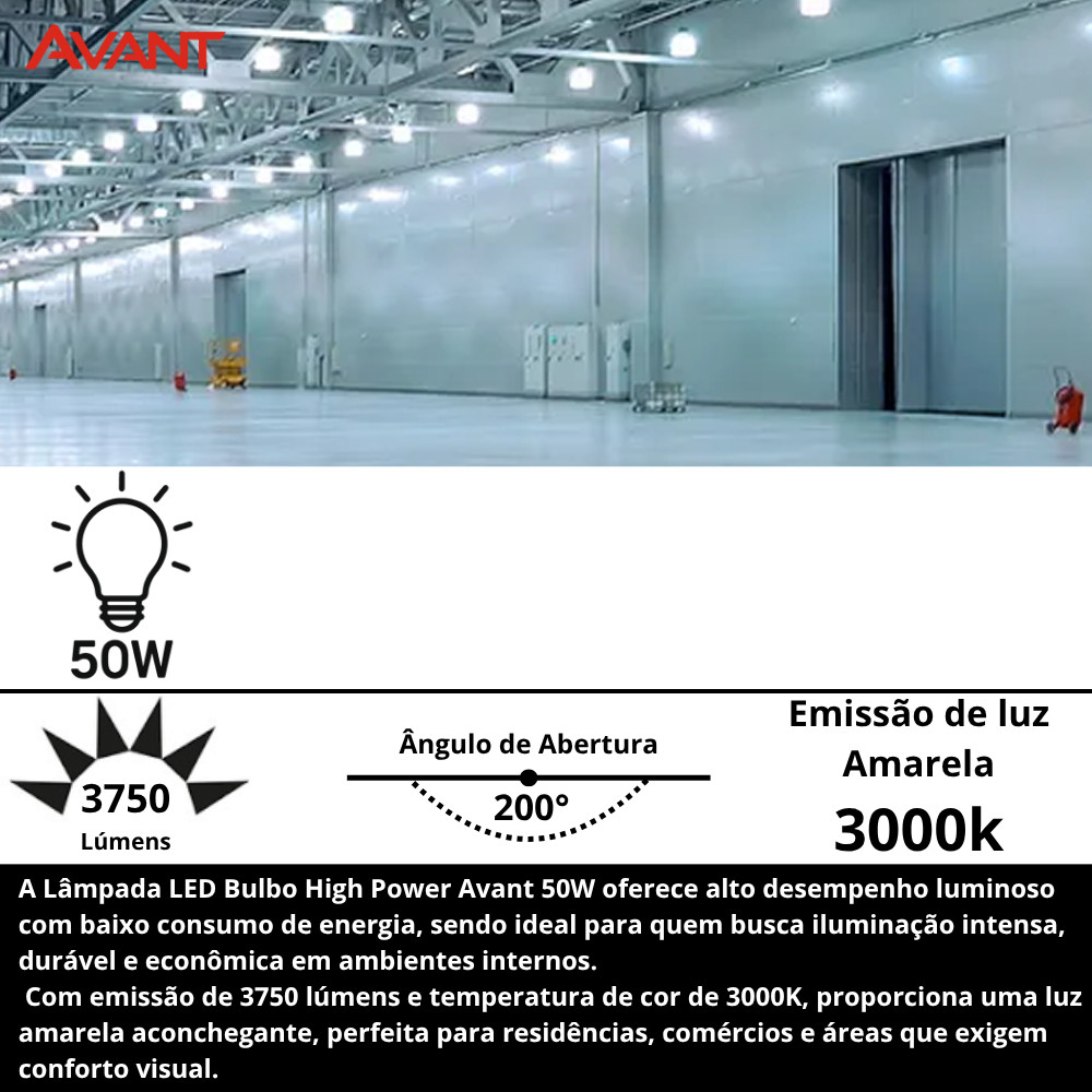 Kit 2 Lâmpadas LED Avant Bulbo High Power 50W Bivolt 3000K E27 Amarela