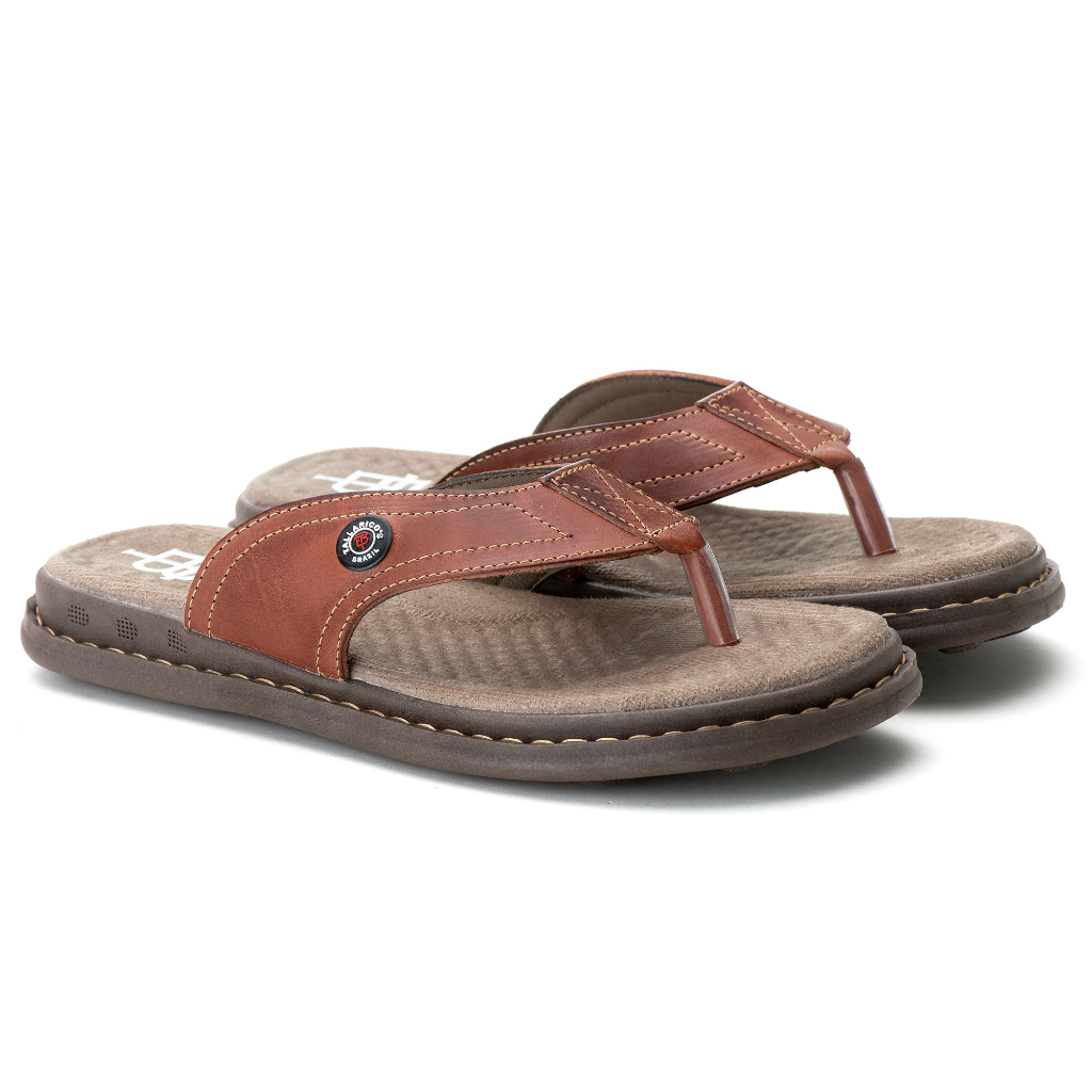 Sandália Antistress Chinelo Dedo Masculino Ortopédico Couro Lançamento