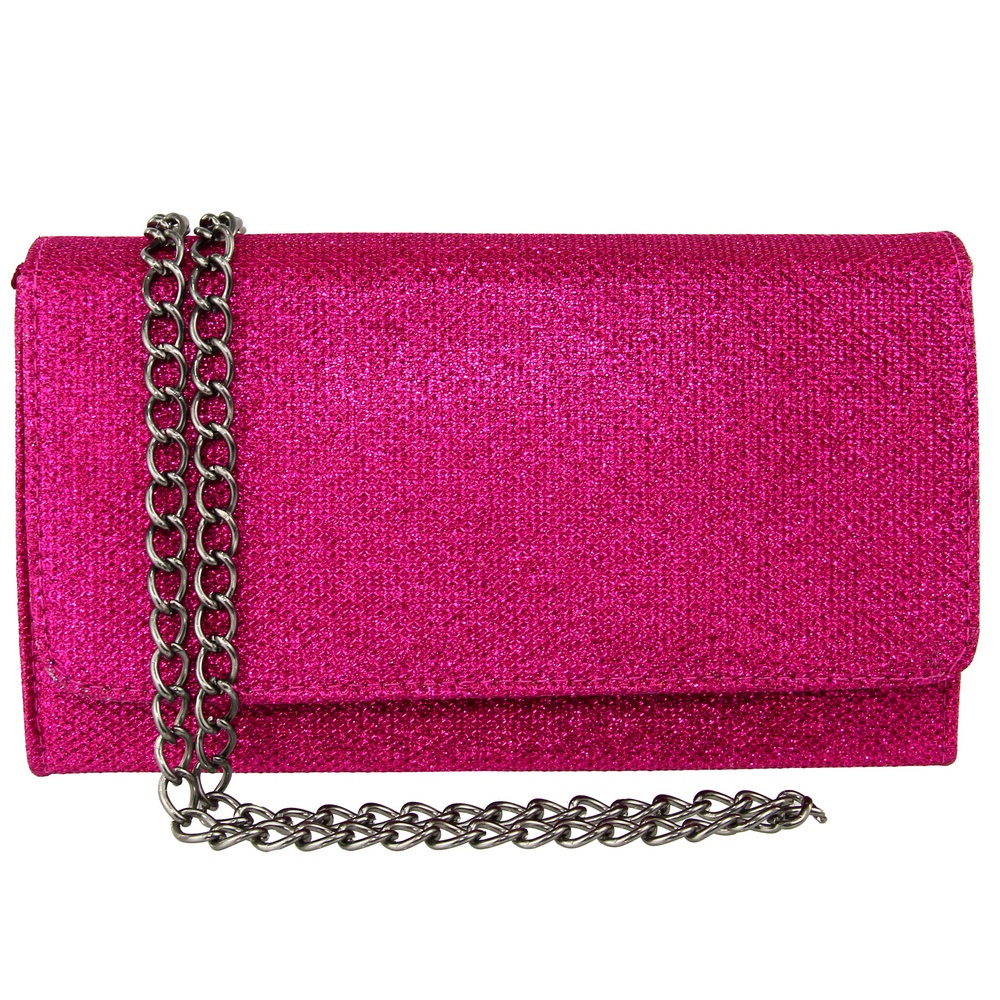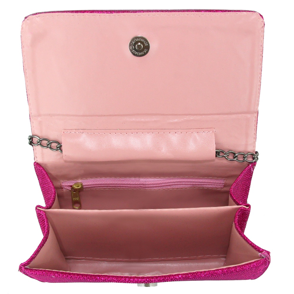 Bolsa Clutch Glitter Brilhante Pequena Alça de Corrente Pink