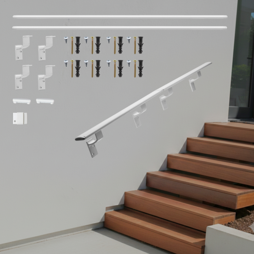 Tubo 1,50 Metros Corrimão Alumínio Chato Preto, Branco ou Brilho P/ Escada Parede Completo
