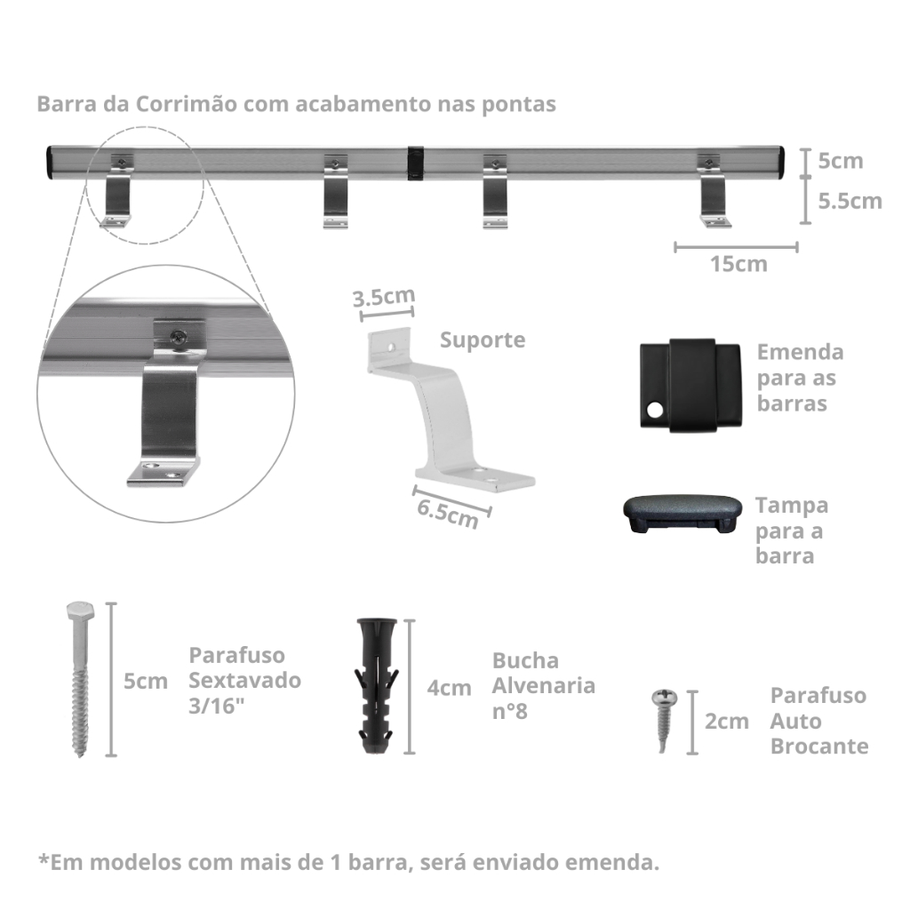 Tubo Corrimão 2,80 Metros Para Escada Parede Rampa Residencial Comercio ProArt Inox