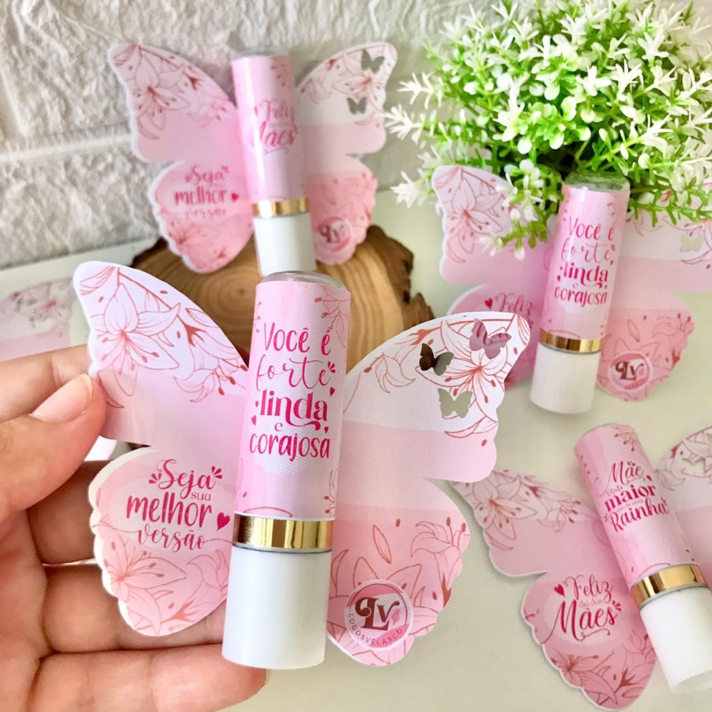 Kit com 10/15/20 Batom manteiga de cacau + card borboleta personalizado lembrancinha, mimo dia das mães