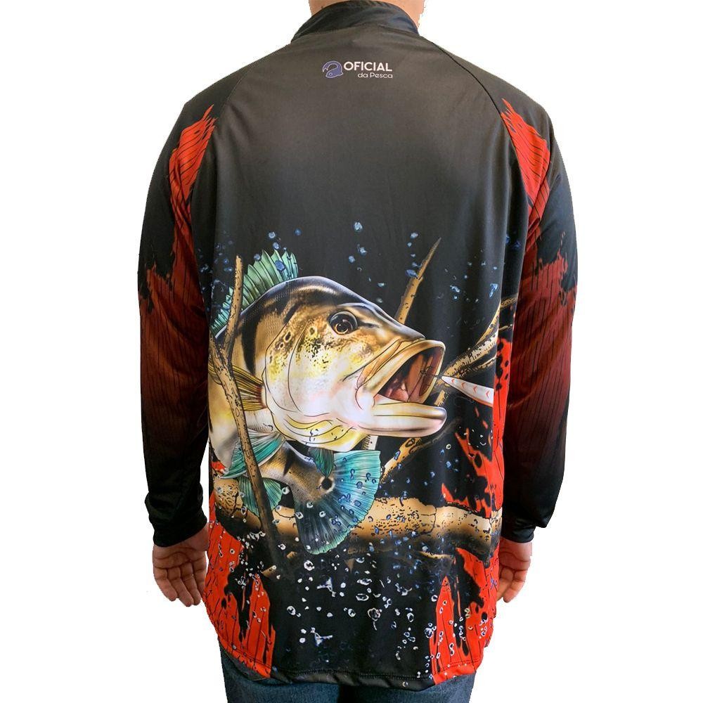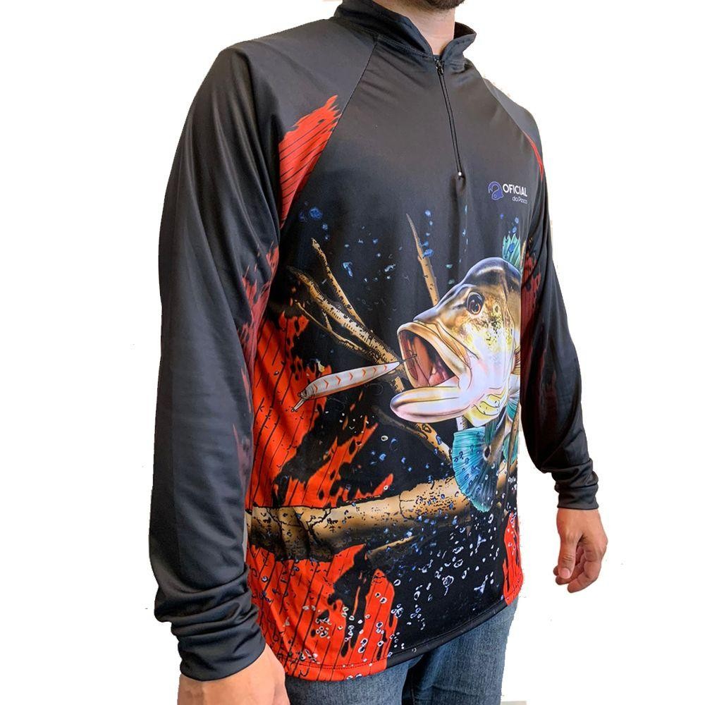 Camisa de Proteção Solar UV Tucunaré Isca Branca - Oficial da Pesca