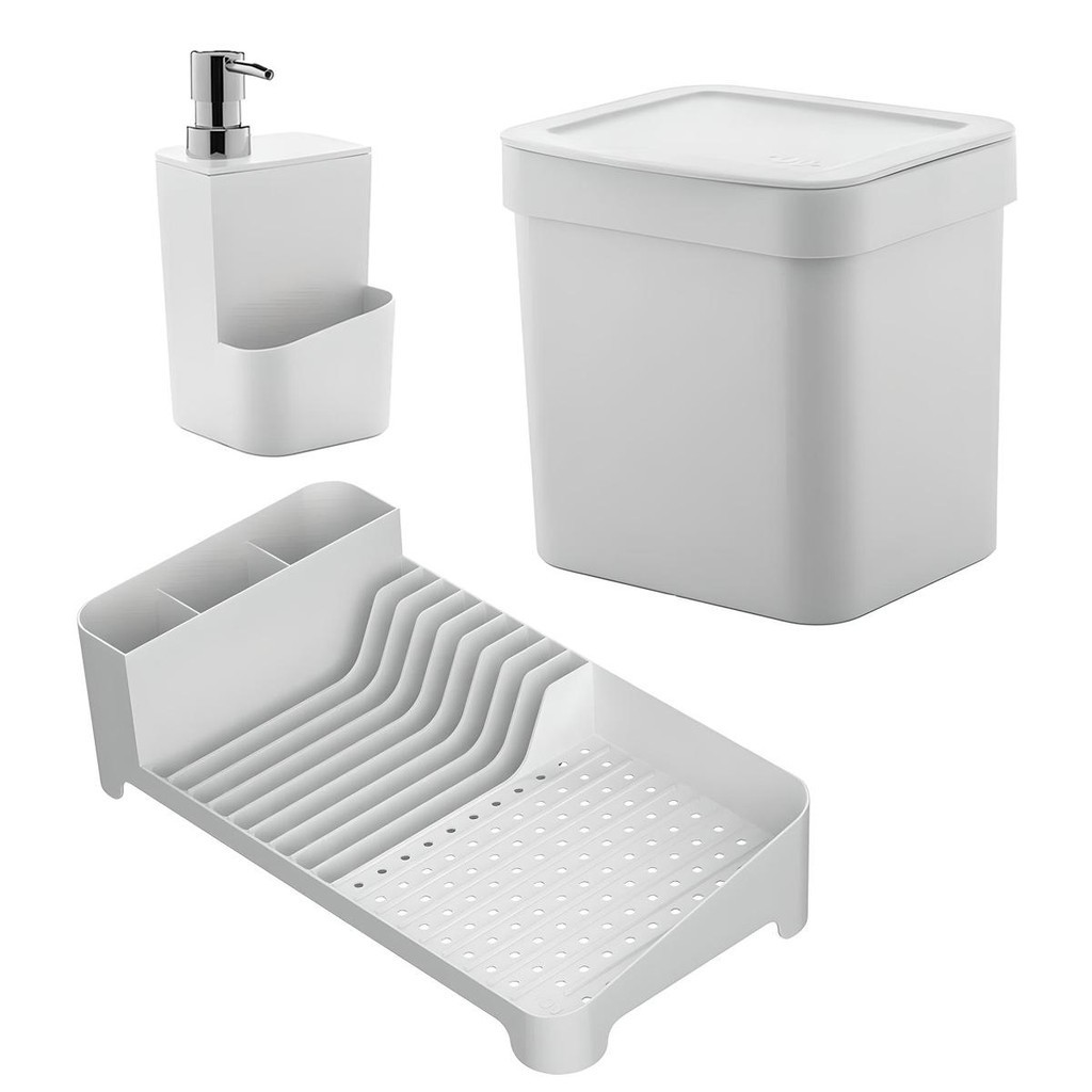 Kit Escorredor de Louças + Lixeira + Dispenser de Detergente Branco - Ou