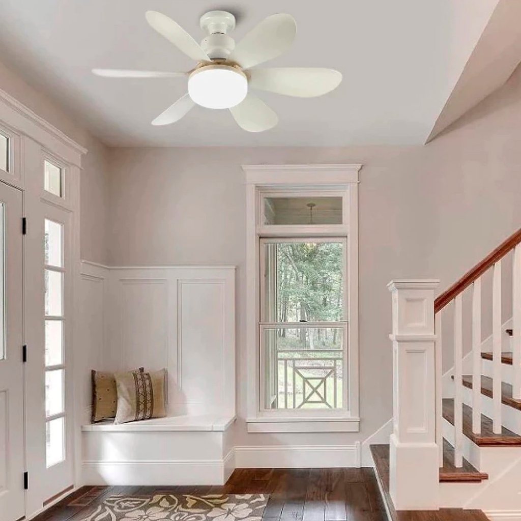 Ventilador Teto Com Luz 80W Integrada Silencioso Branco 6 Pás Com Controle Remoto E27