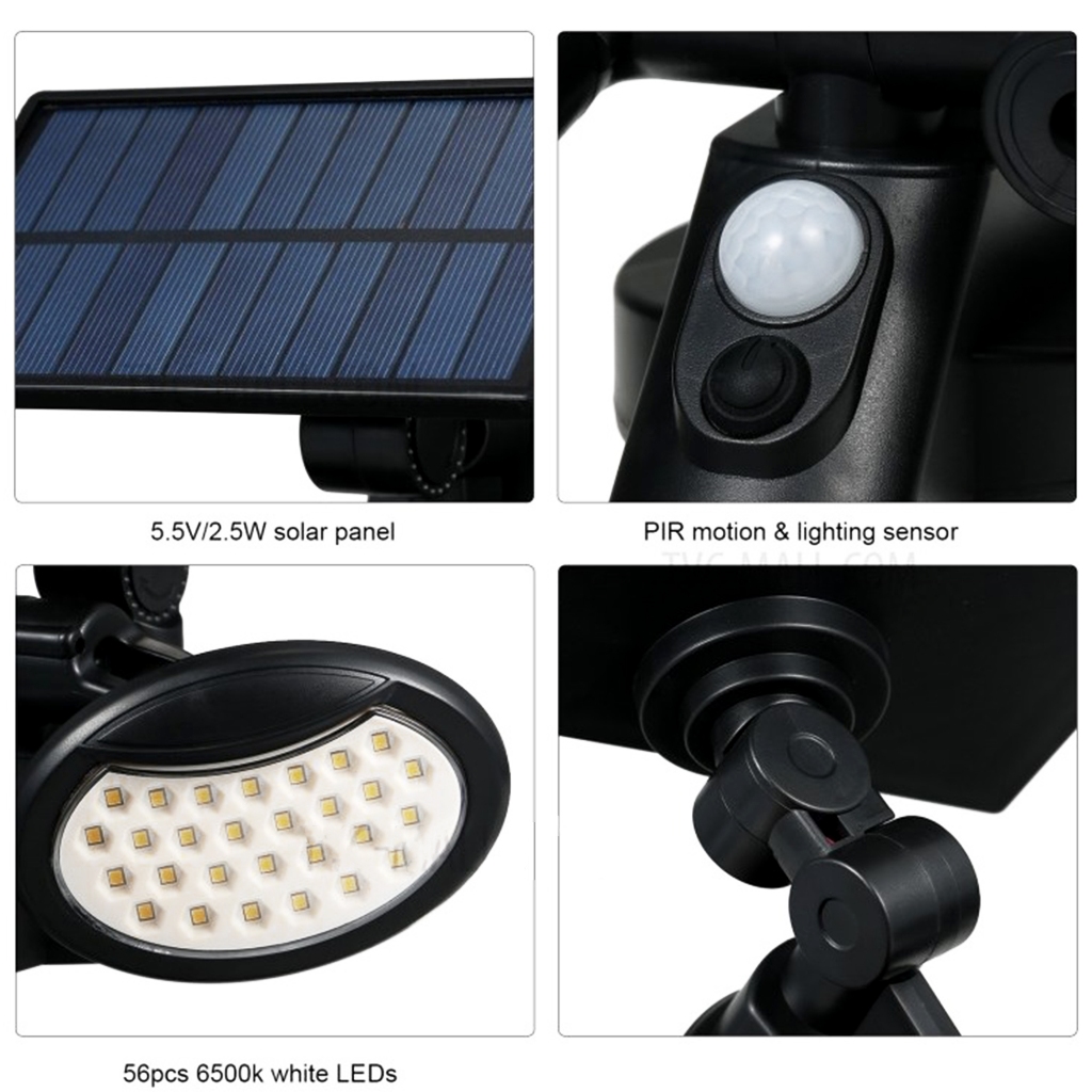 Luminária Solar LED 30w Articulada Luz Direcionavel Acendimento Automático com Sensor de Presença