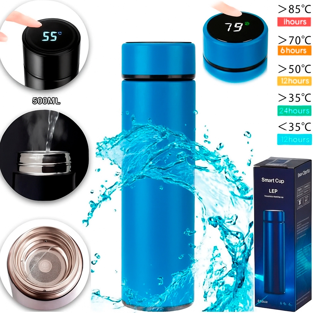 [Liquidação]Garrafa Térmica Aço Inox Portátil 500ml Infantil com Termometro e Visor LED Temperatura