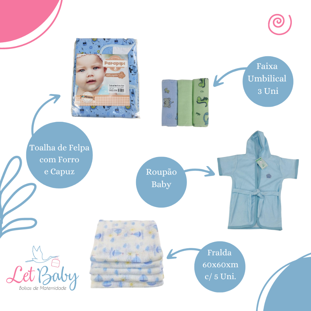 KIT BANHO DO BEBÊ BANHEIRA 22L + ENXOVAL COMPLETO CESTO KIT HIGIENE FRALDAS MAMADEIRAS LIXEIRA E ACESSÓRIOS - AZUL/ROSA
