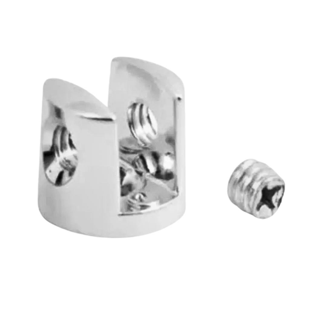 Conjunto de 20 Suportes em Metal Cromados para Prateleiras de Vidro Fenda 6mm com 2 Furos