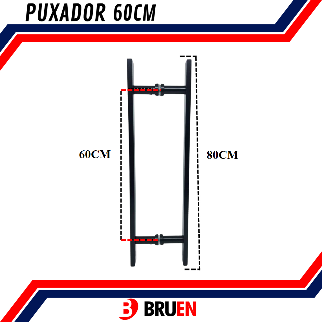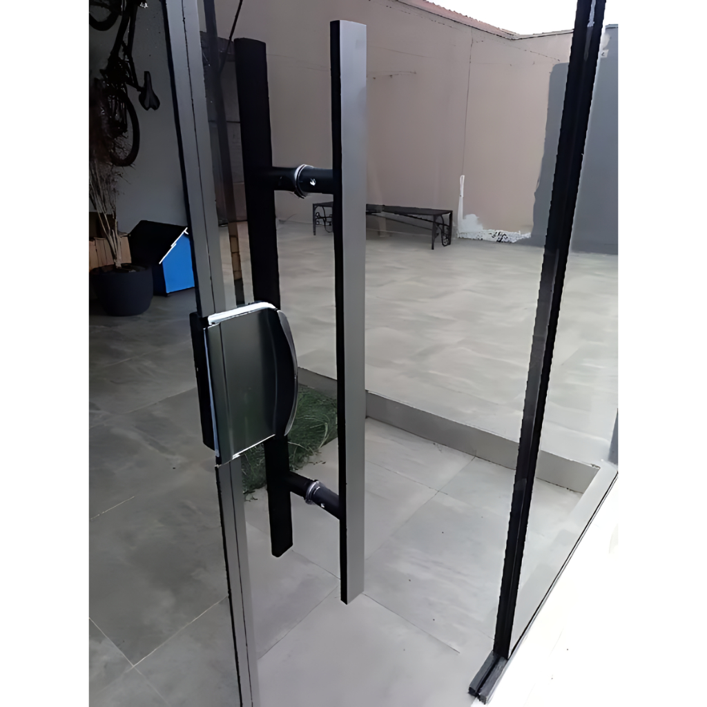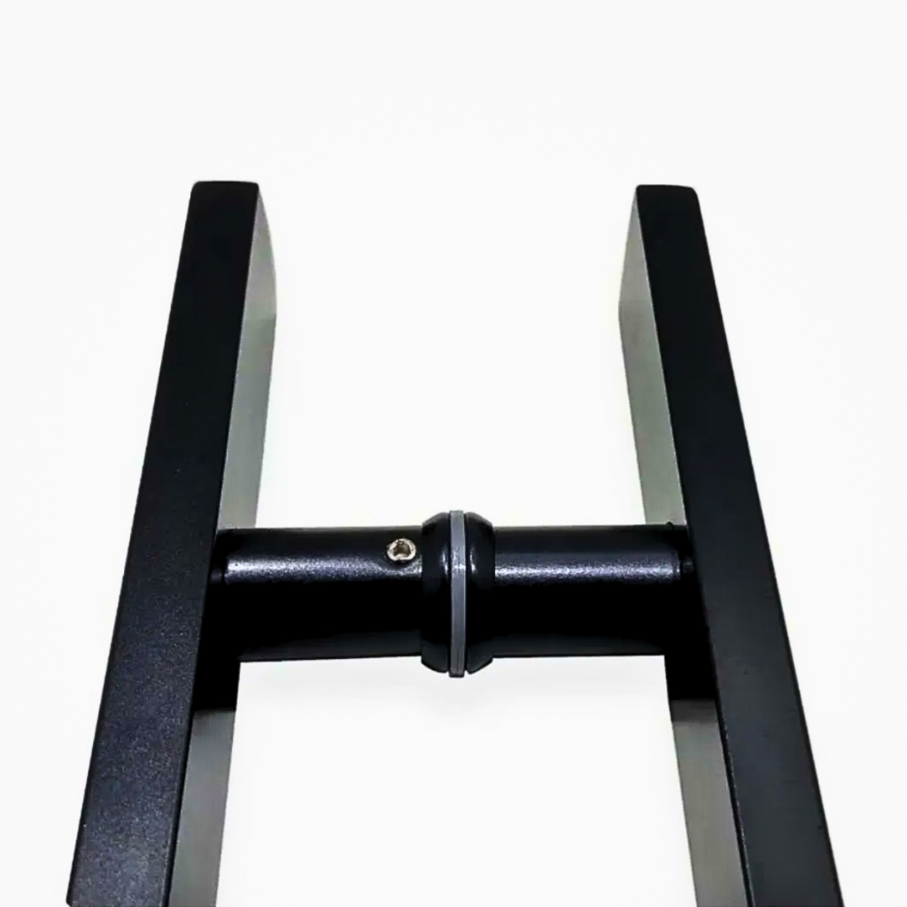 Puxador Duplo Pivotante Metal Inoxidável Robusto Preto Fosco Luxo Para Portas Madeira, Vidro e Metal