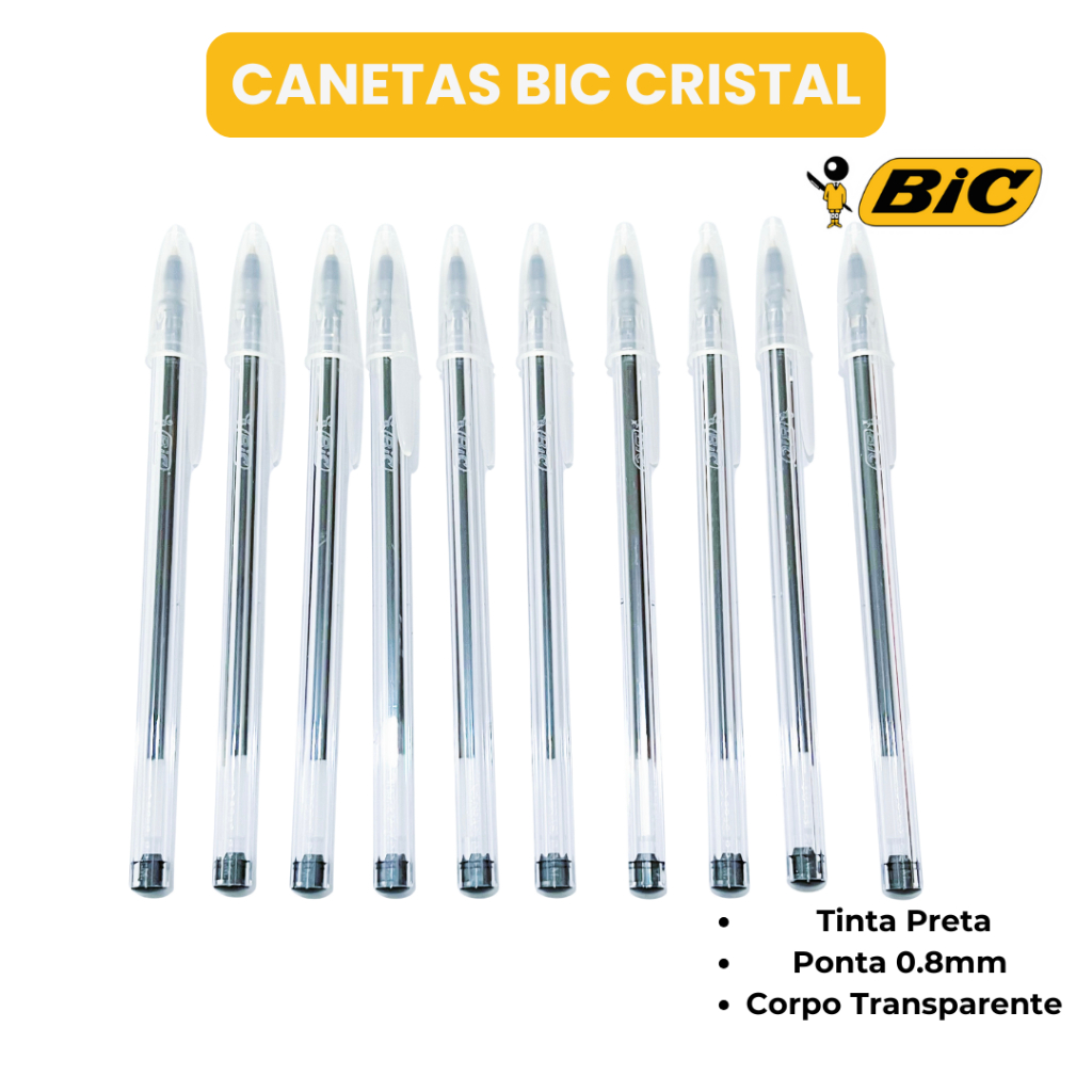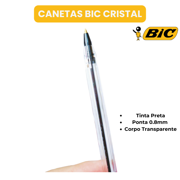 Caixa com 50 Canetas BIC Cristal Fina 0.8mm Preta – Escrita Suave e Precisa