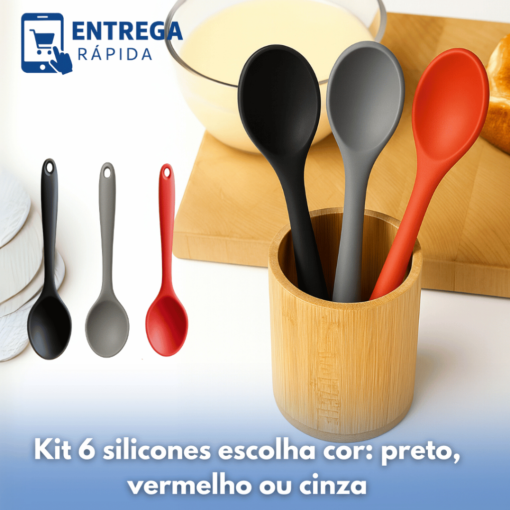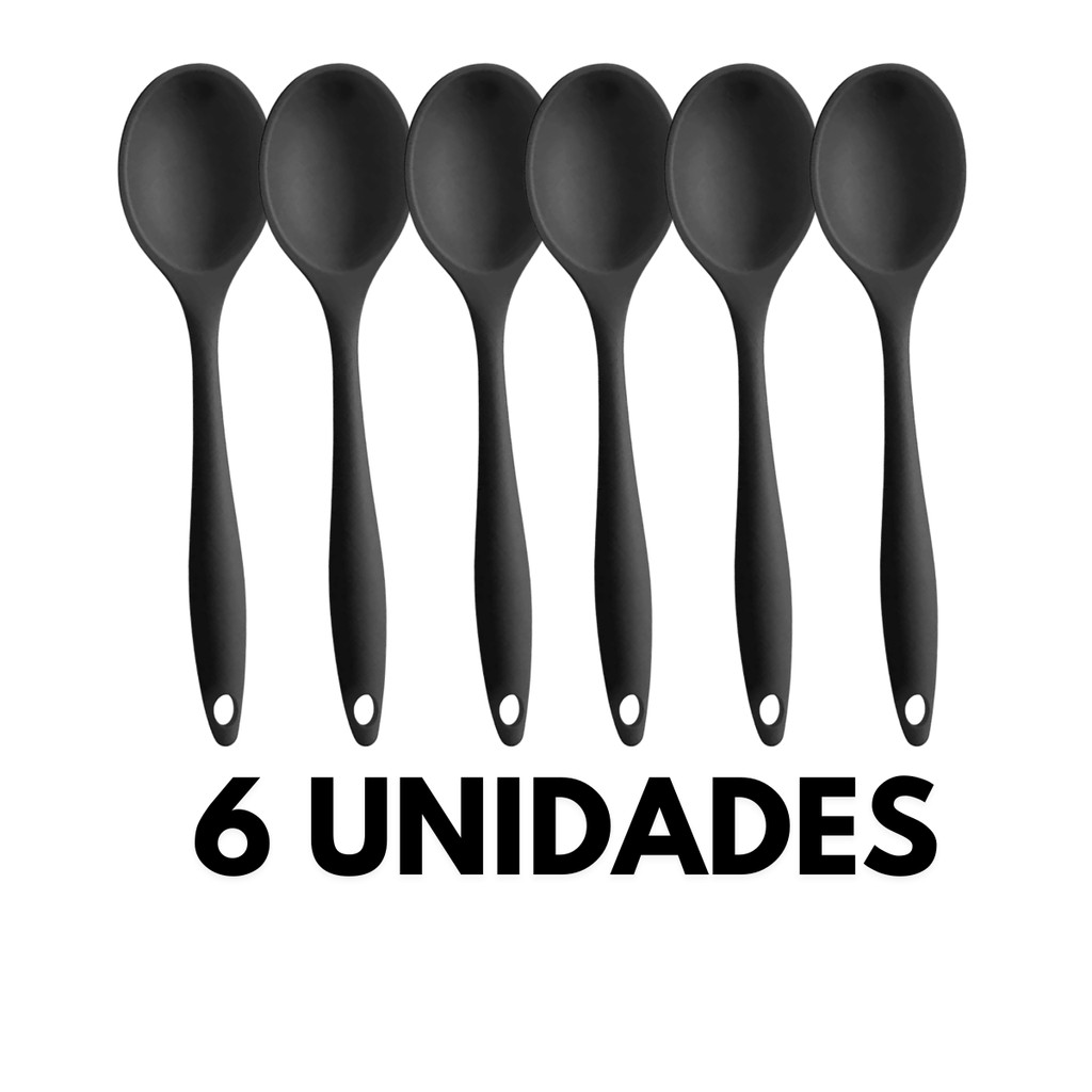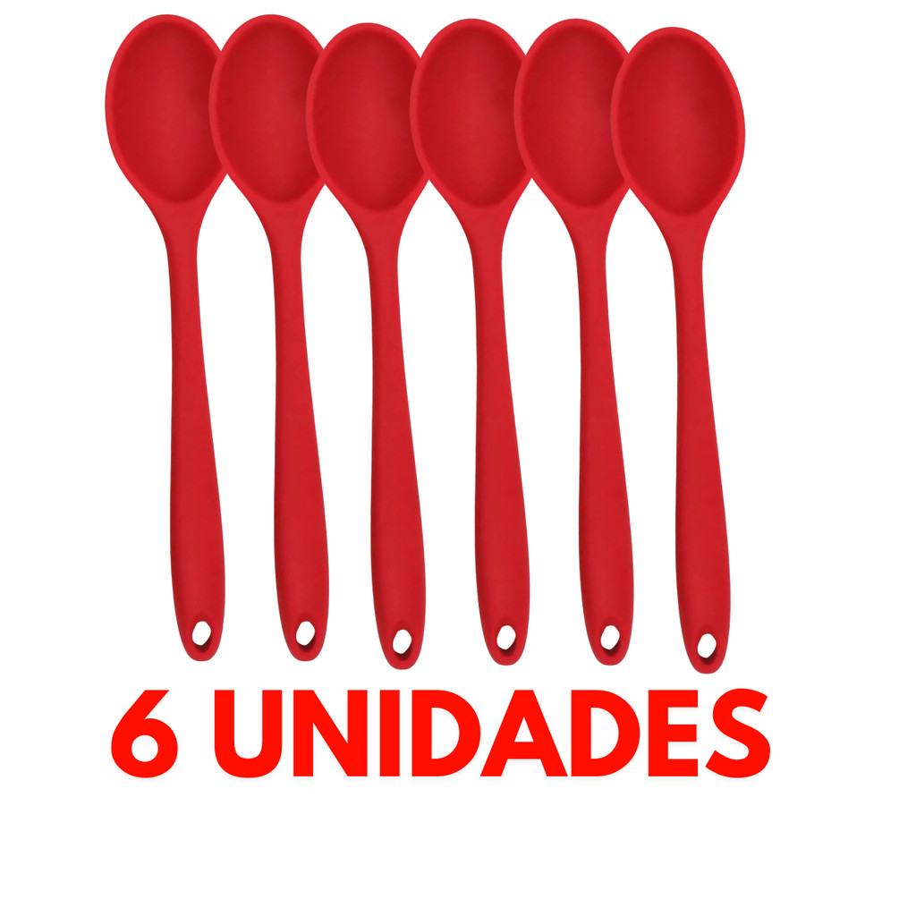 Kit 6 Colher de Silicone Antiaderente Utensílios de Cozinha Jogo de Colheres de Arroz de Silicone
