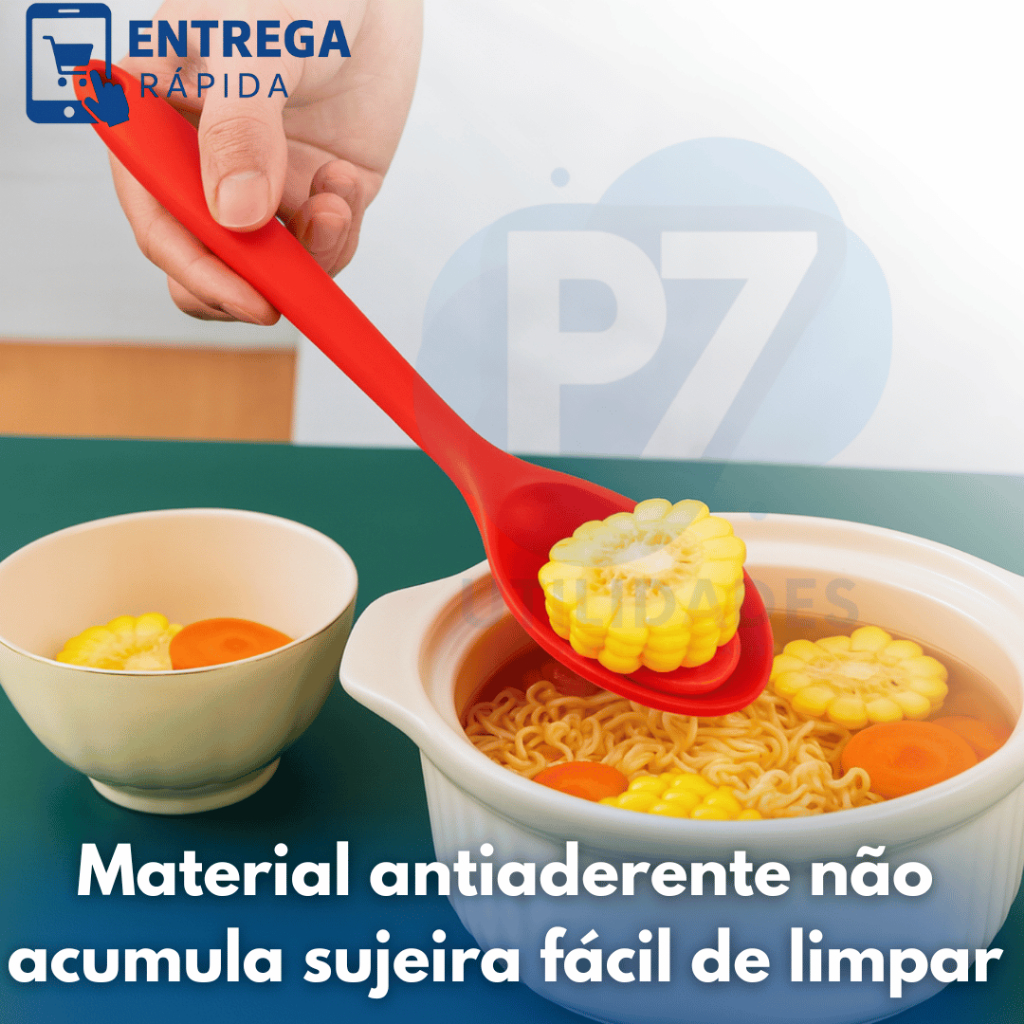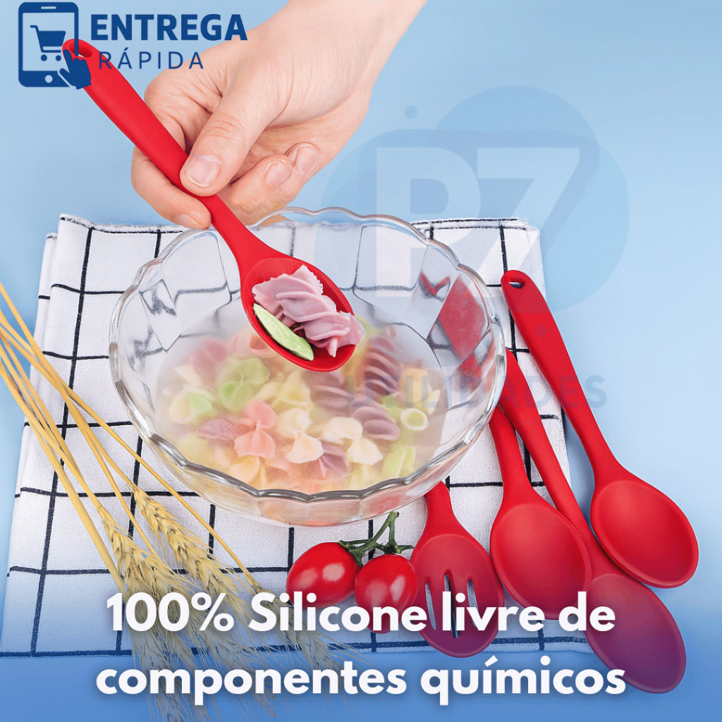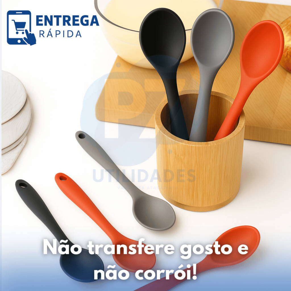 Kit 6 Colher de Silicone Antiaderente Utensílios de Cozinha Jogo de Colheres de Arroz de Silicone