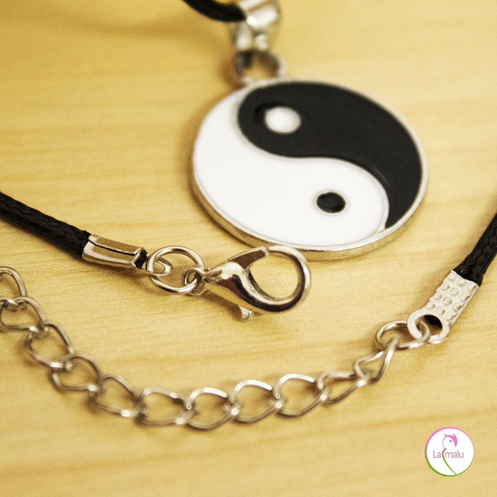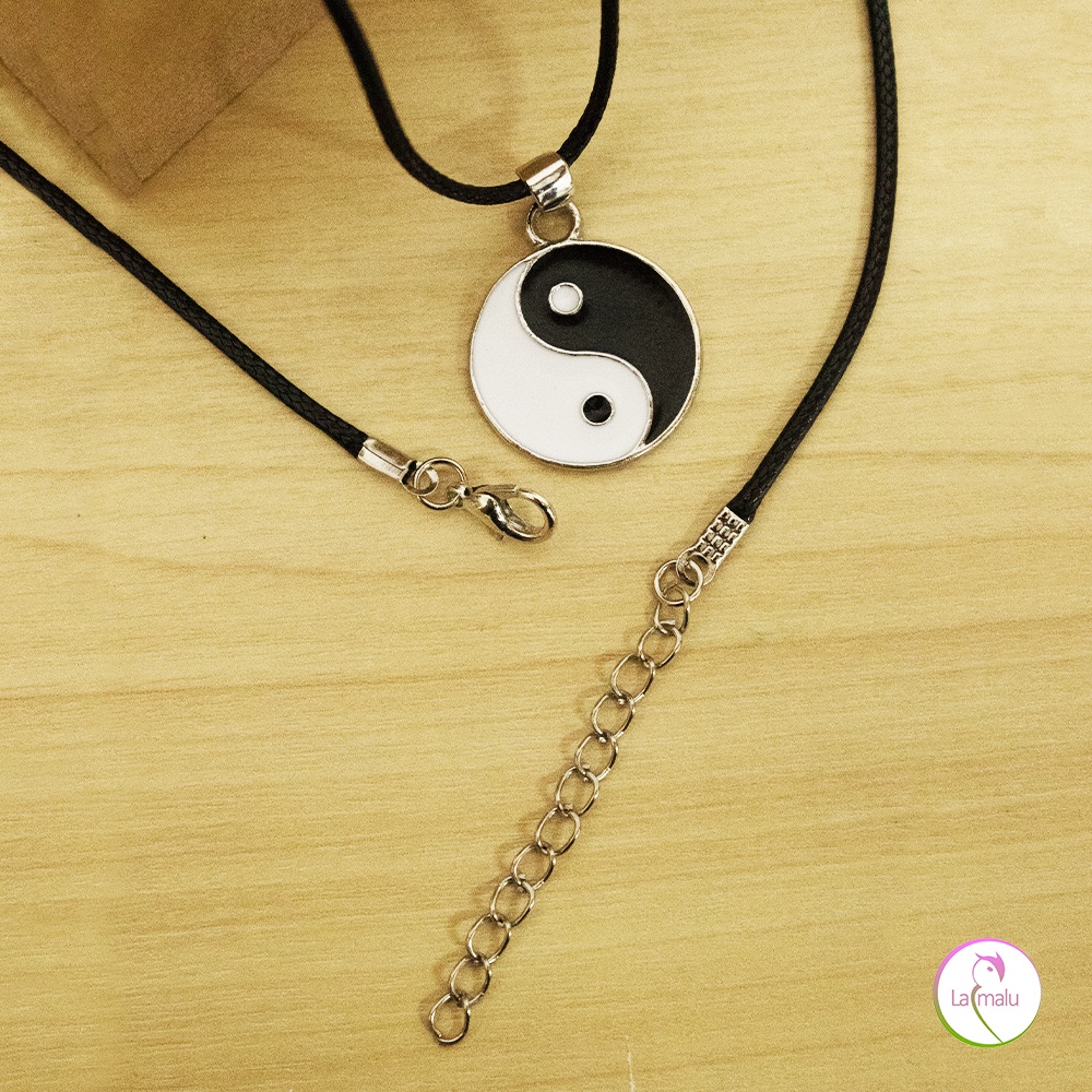 Colar Unissex Yin Yang Símbolo Chines Preto e Branco - Cordão Preto com Fecho