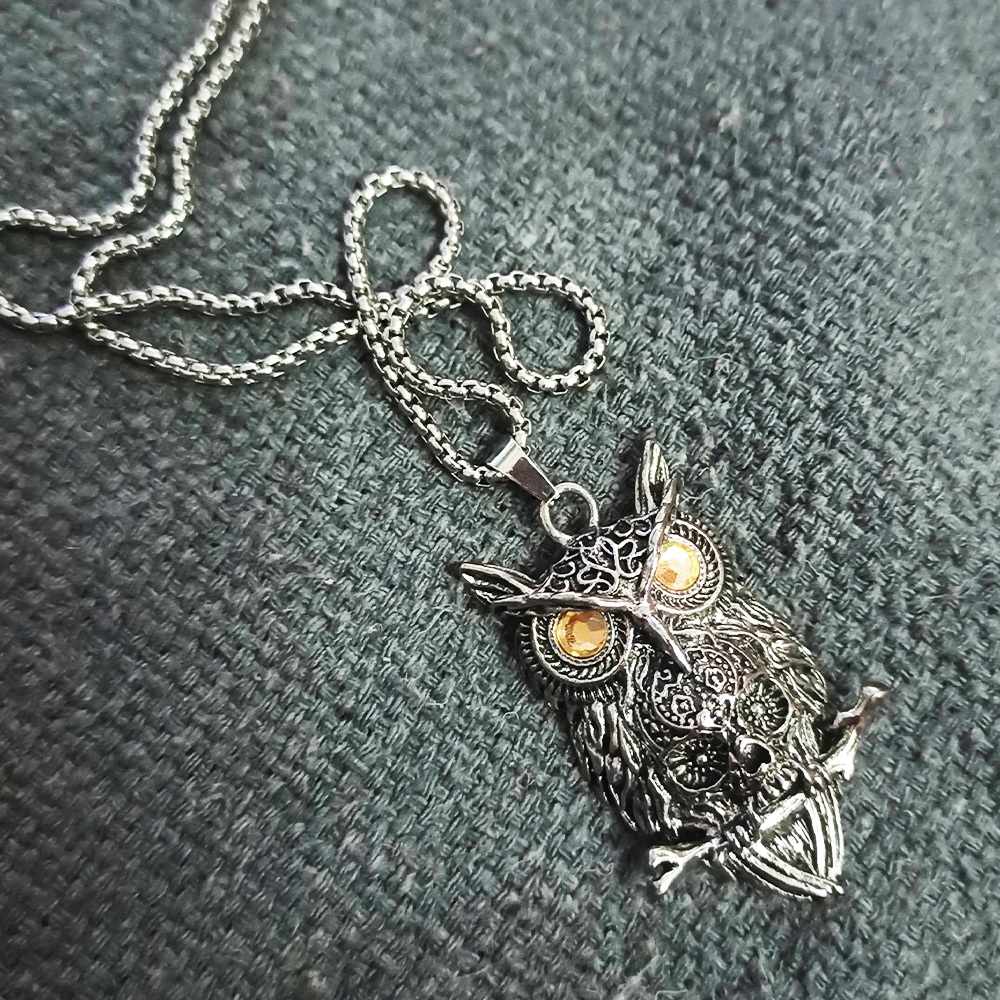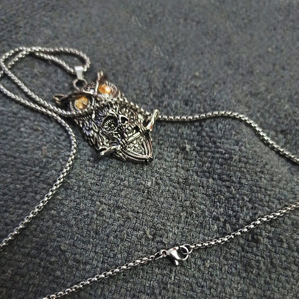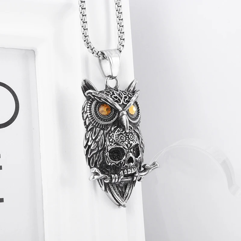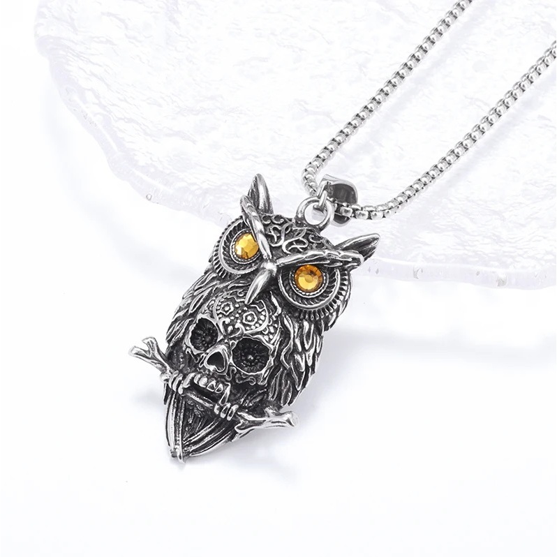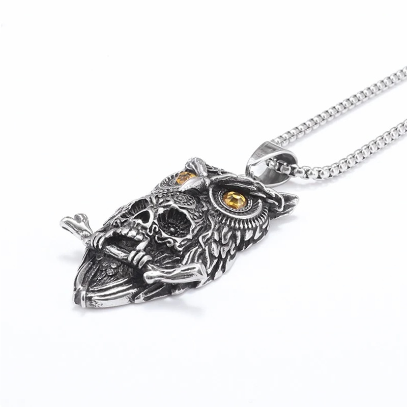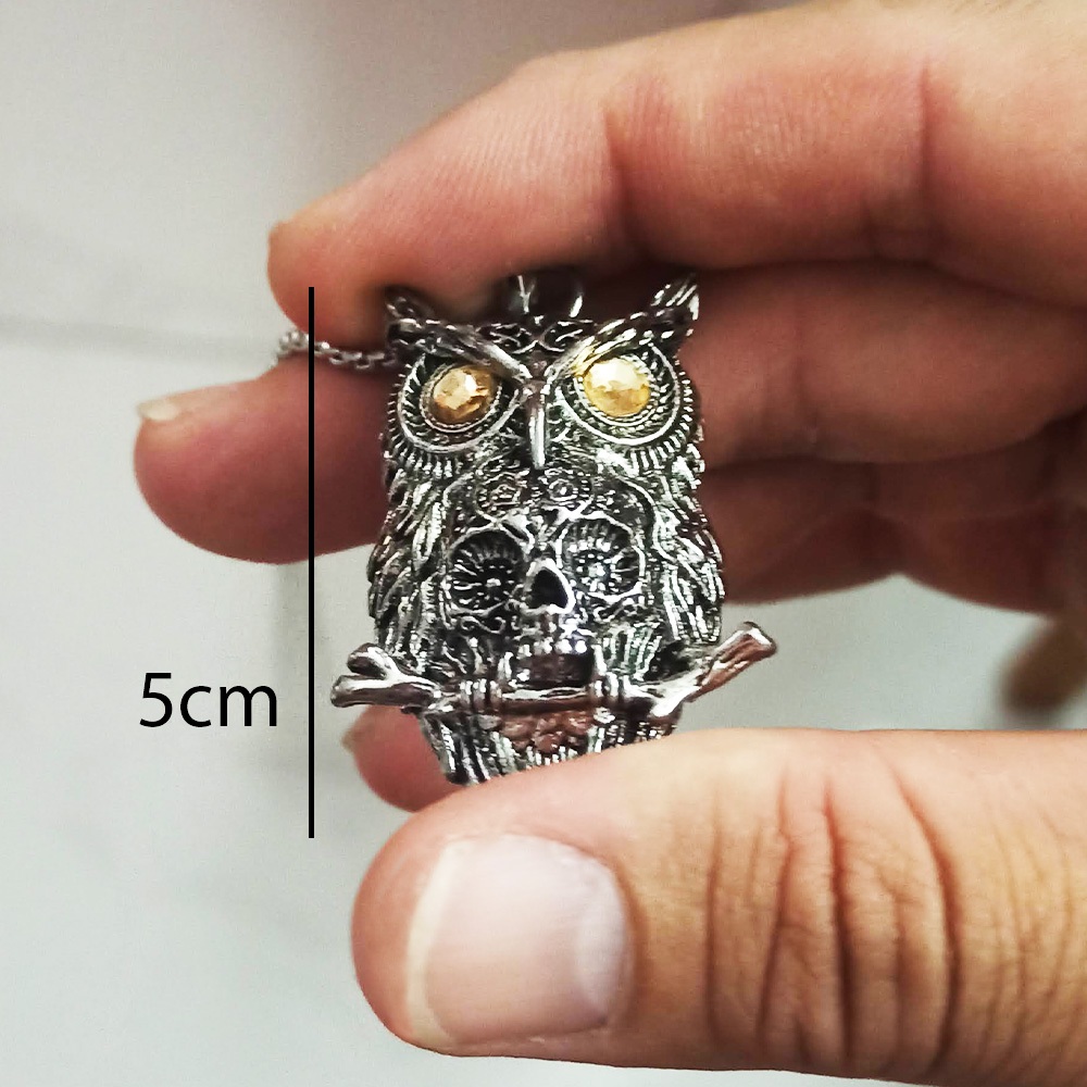 Colar de Metal Pingente Coruja e Caveira Bijuteria - Estilo Vintage Gótico Corrente de Metal